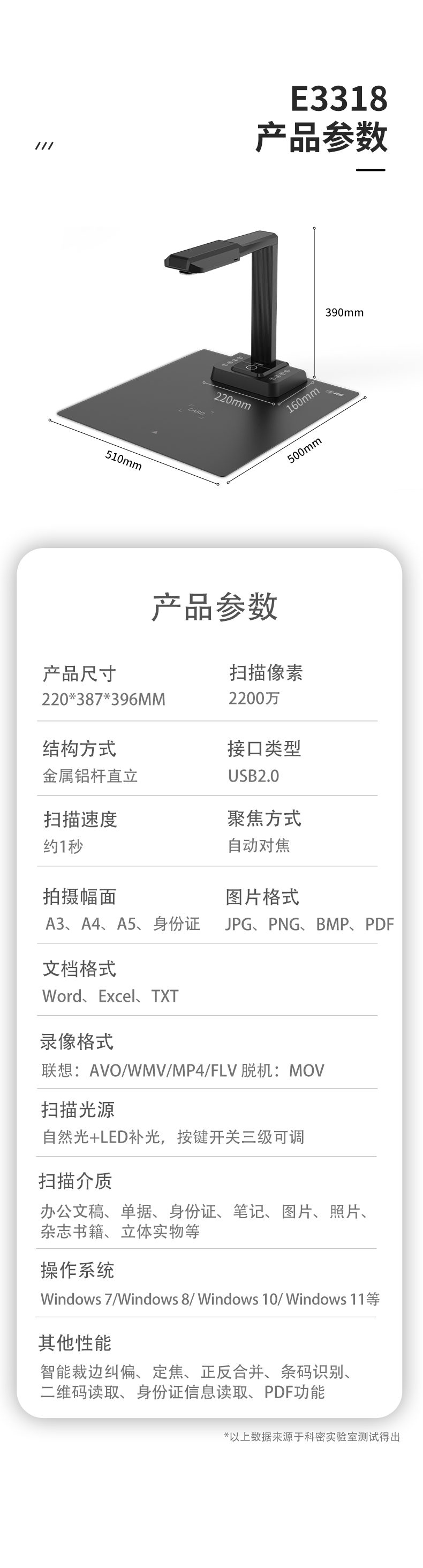科密(comet) E3318 高拍仪2200万像素扫描仪 A3A4幅面 曲面展平OCR图文识别