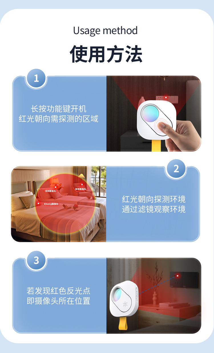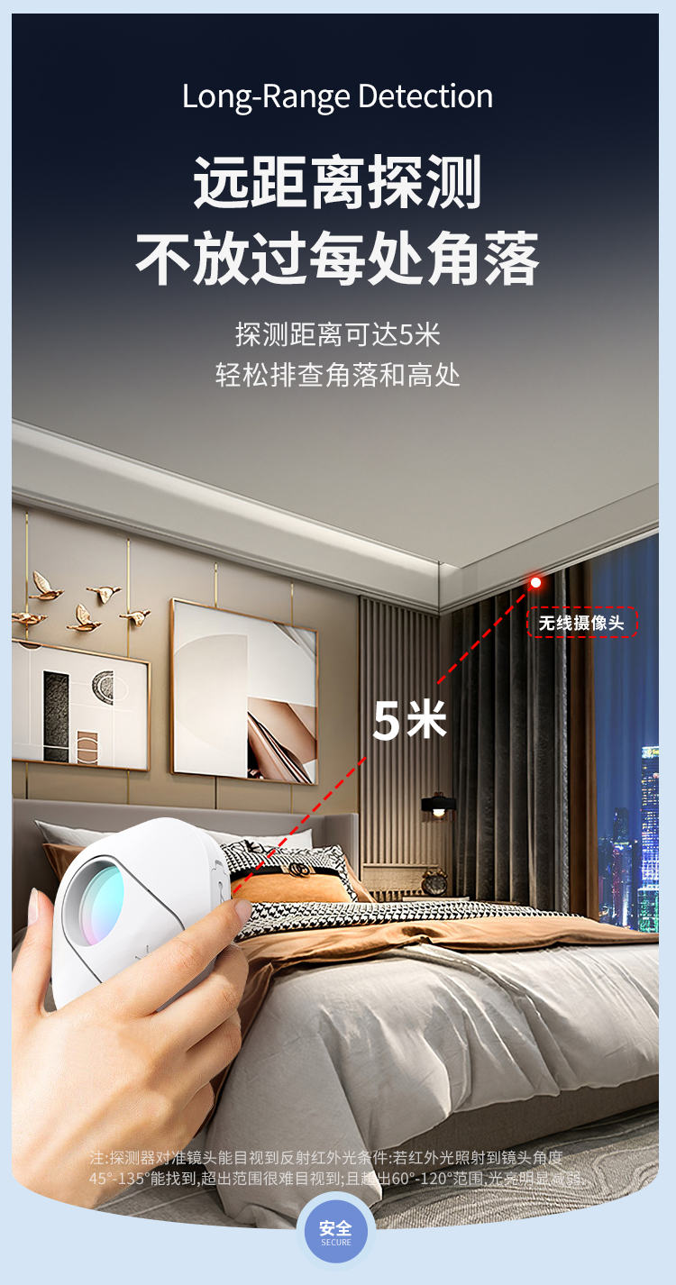科密KD05 酒店摄像头探测器 防拍摄检测仪可充电红外线防监控扫描检测器 宾馆民宿 白色
