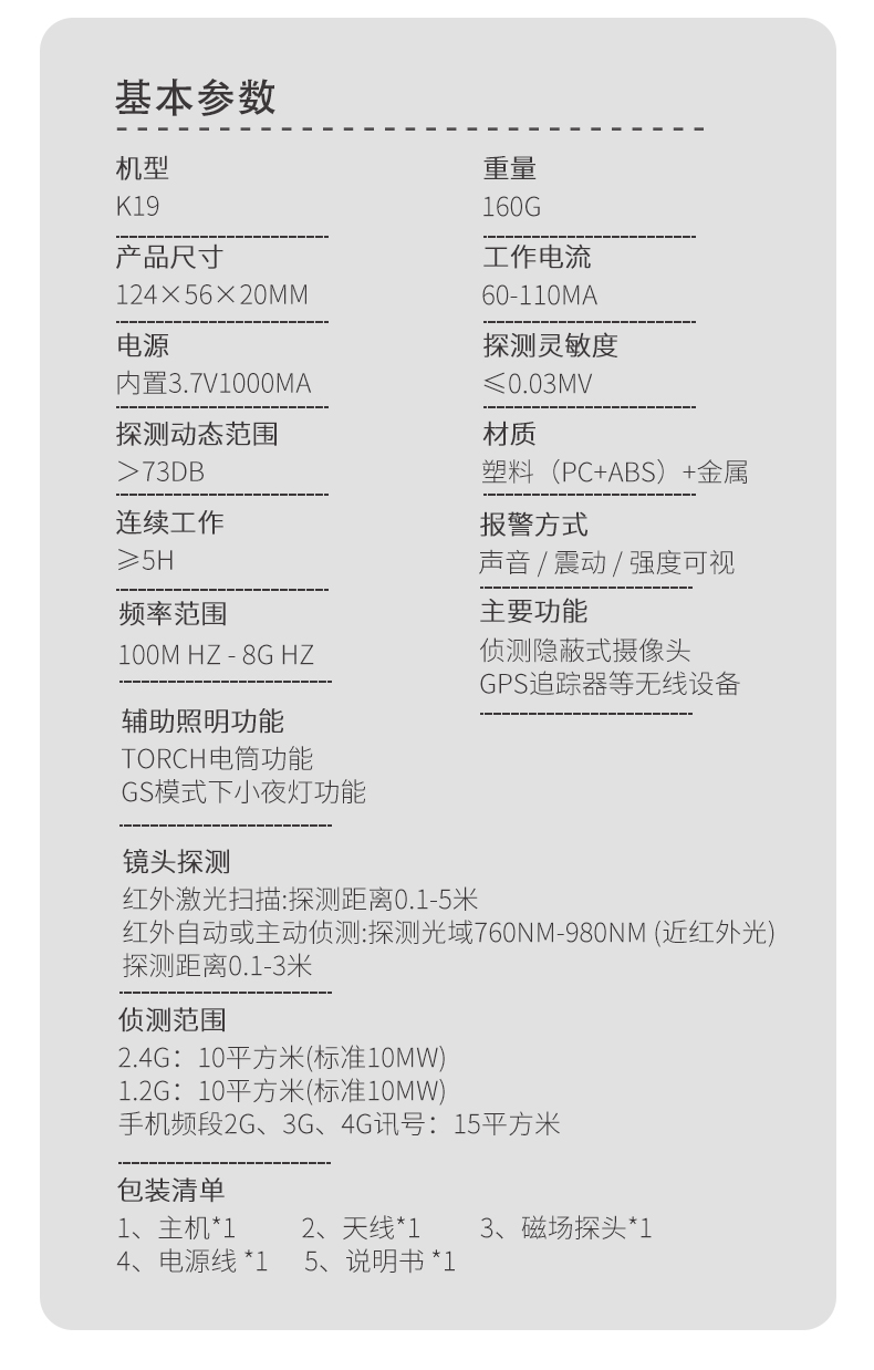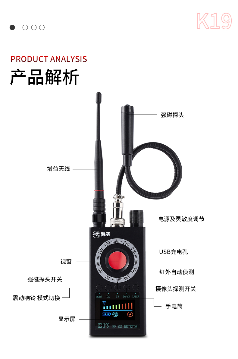 科密摄像头探测器酒店防镜头偷摄反监控窃器防北斗gps跟踪仪K19