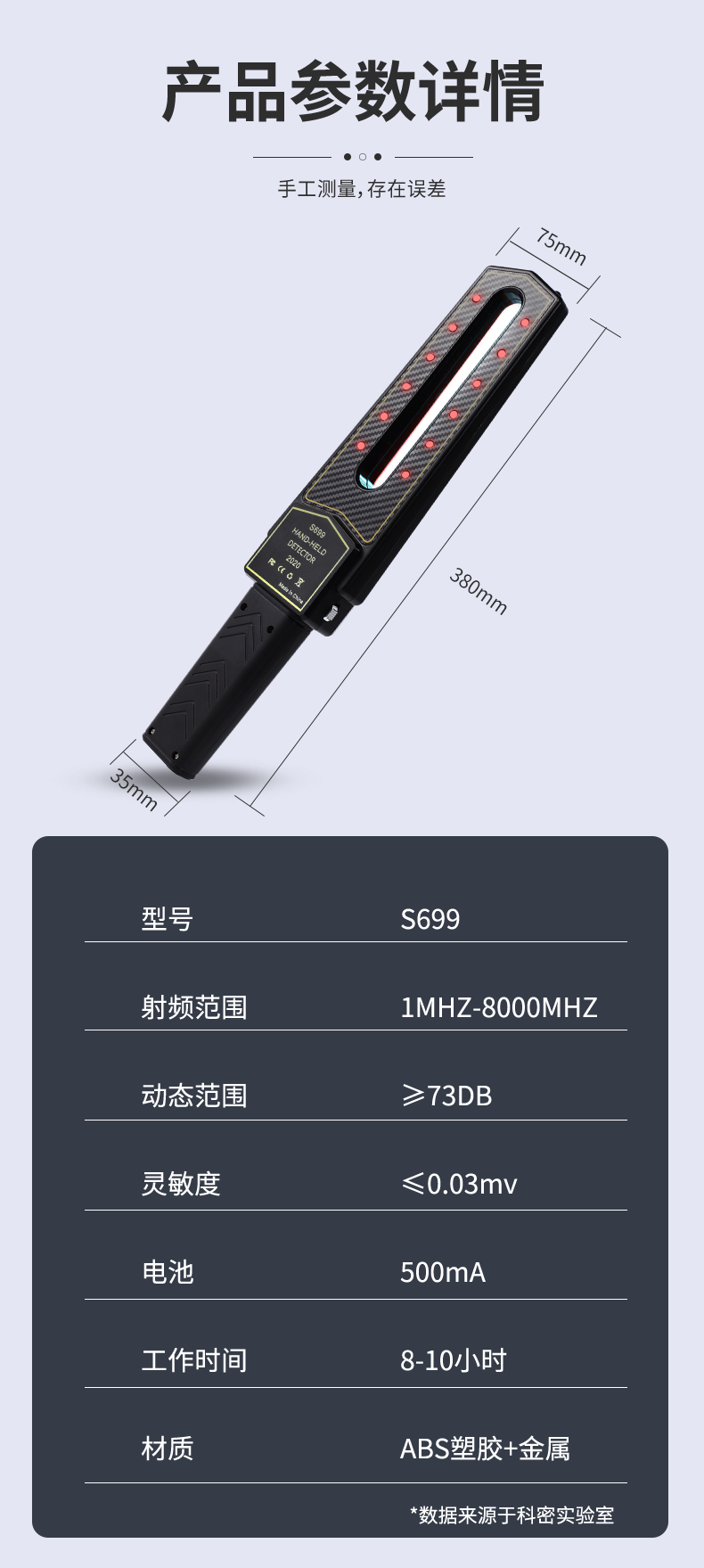 科密摄像头探测器会所酒店专用防镜头偷摄反监听控窃器跟踪仪S699