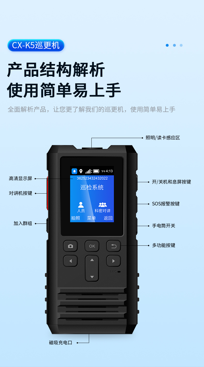 科密CX-K5 4G版GPS对讲巡更棒 巡更机 带对讲功能高清显示 电子巡更系统 保安巡逻棒 物业巡更打点棒