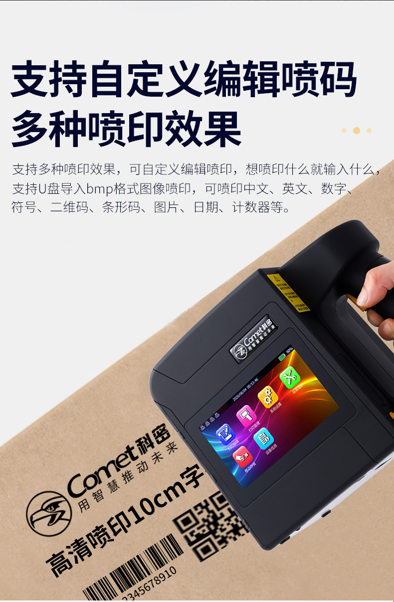 科密M6手持式喷码机墨盒中大型便携打码机日期条码二维码图标大字符自动喷码水性