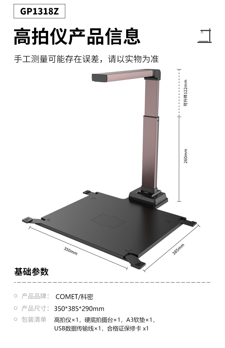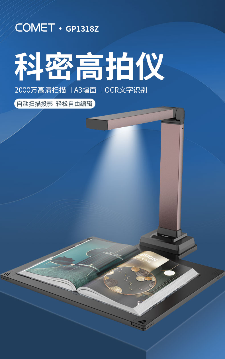 Comet科密GP1318Z高拍仪2000万像素高清扫描仪连续快速扫描A3A4文件自动扫描高清专业办公家用高清高拍仪