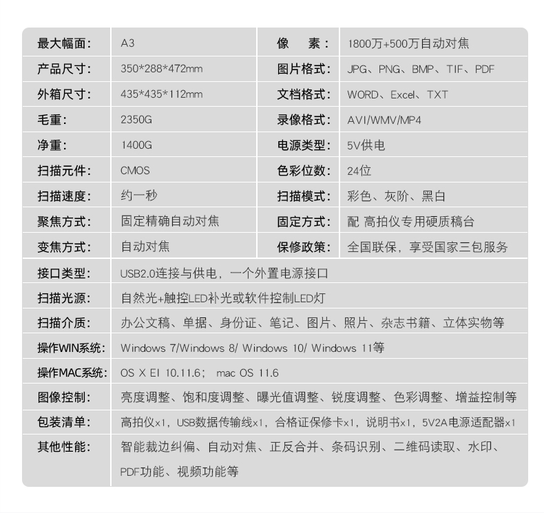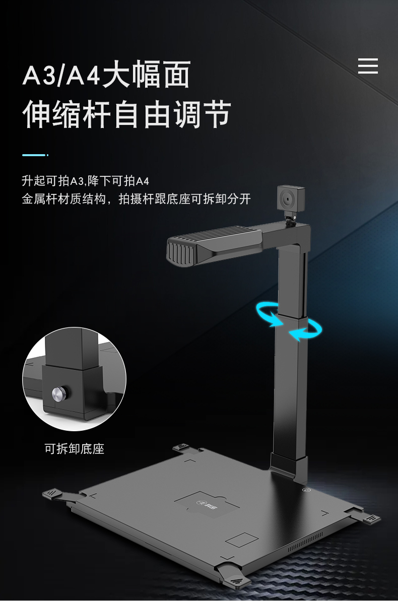 科密(comet) GP2500AF 高拍仪 1800万+500万双摄A3A4扫描仪 投影录像 合同文件资料证件存档 支持国产系统