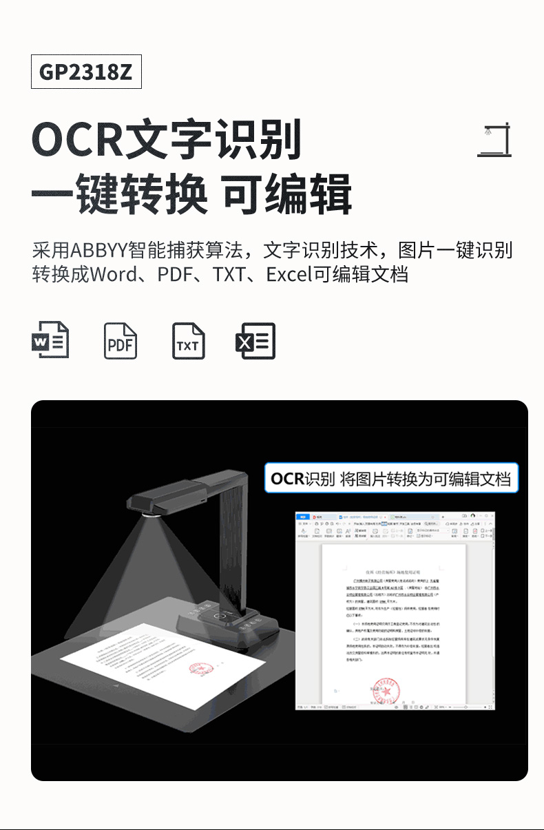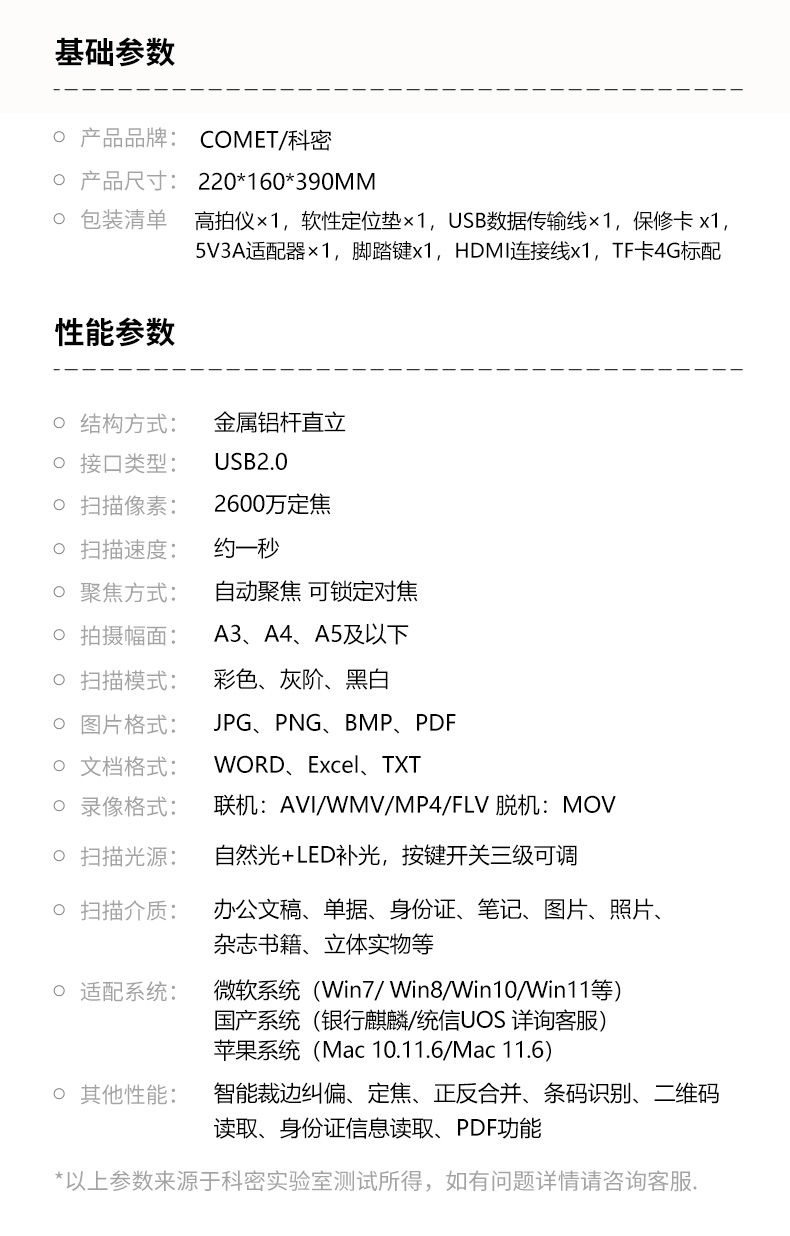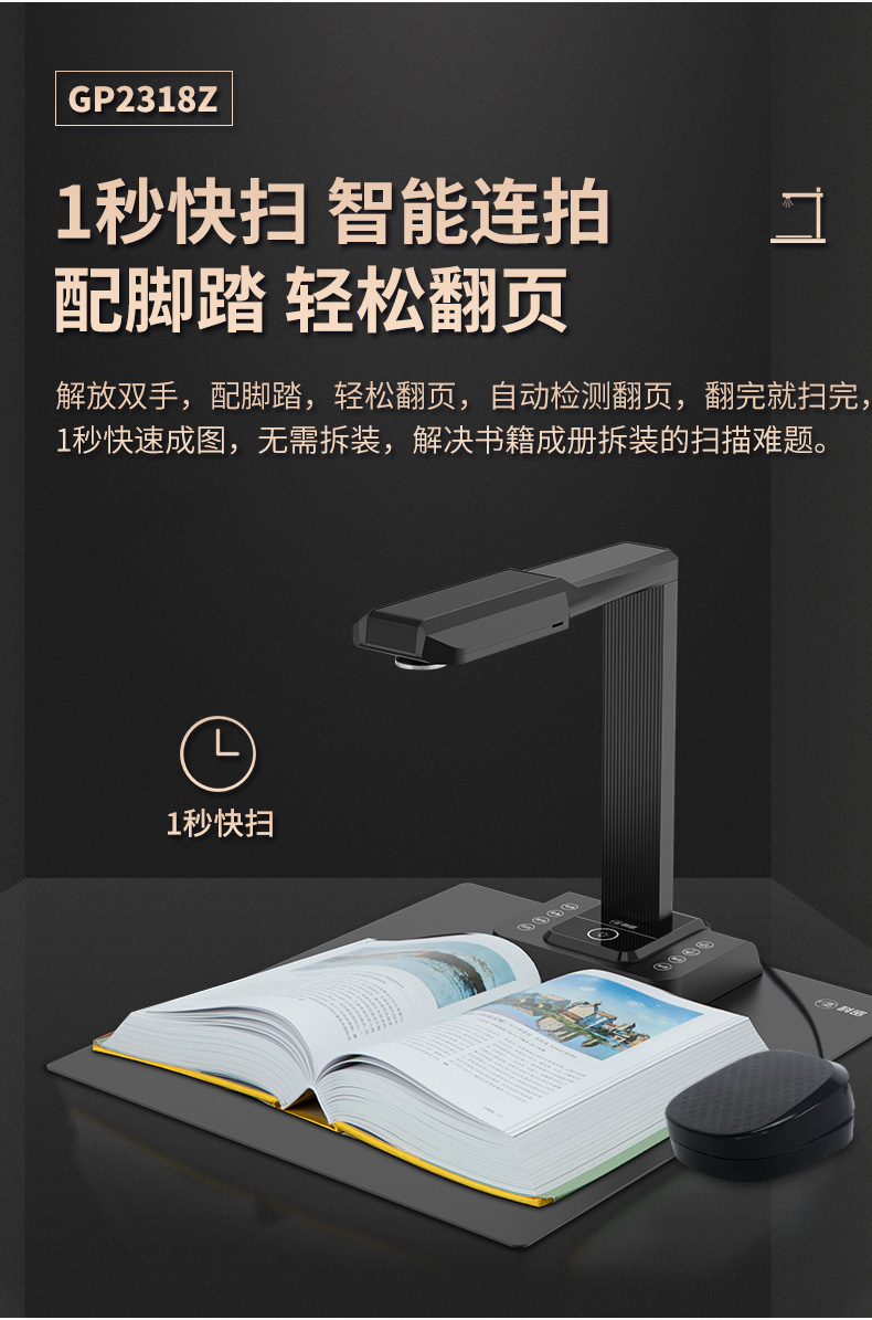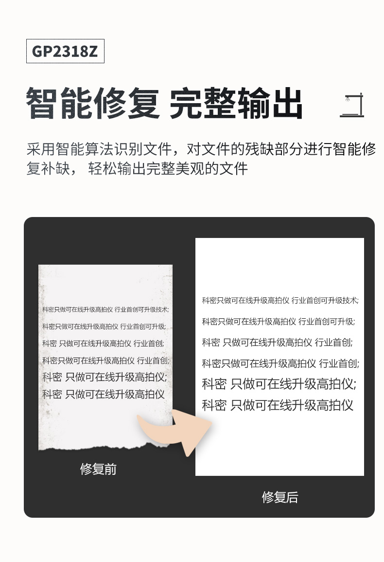 科密(comet) GP2318Z 高拍仪 2600万像素 可在线升级扫描仪 A3A4文件PDF合成 HDMI 书籍展平 国产系统