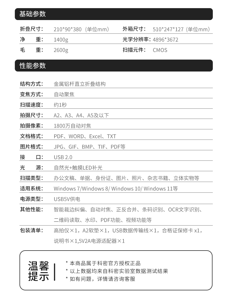 科密(comet) GP2600AF 高拍仪 1800万像素A2A3A4扫描仪 工程资料图纸绘画图文 教育会议投影 支持国产系统