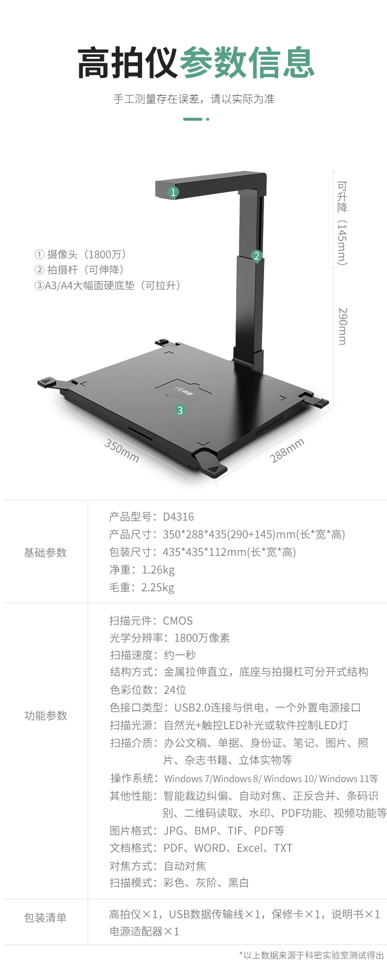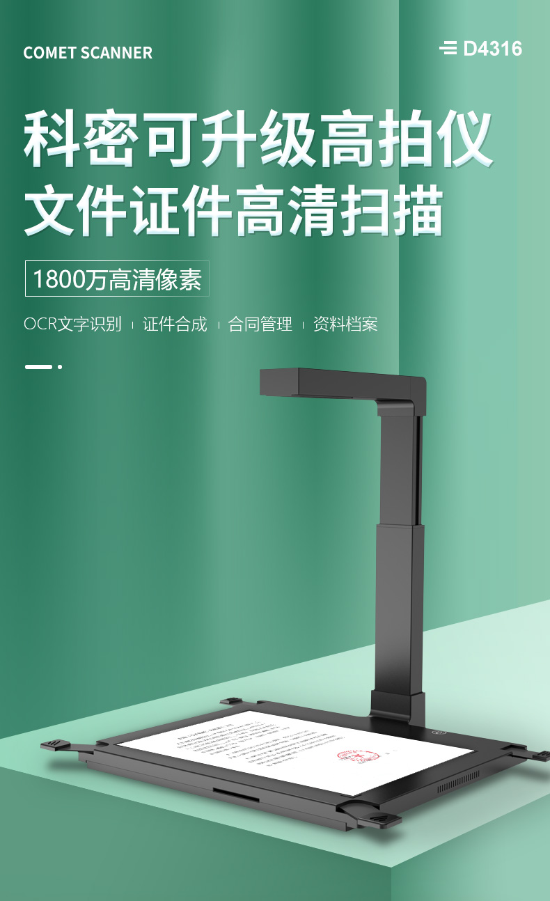 科密(comet) D4316 高拍仪 1800万像素扫描仪 A3A4办公文档资料编辑优化 OCR识别 统信麒麟国产系统二次开发