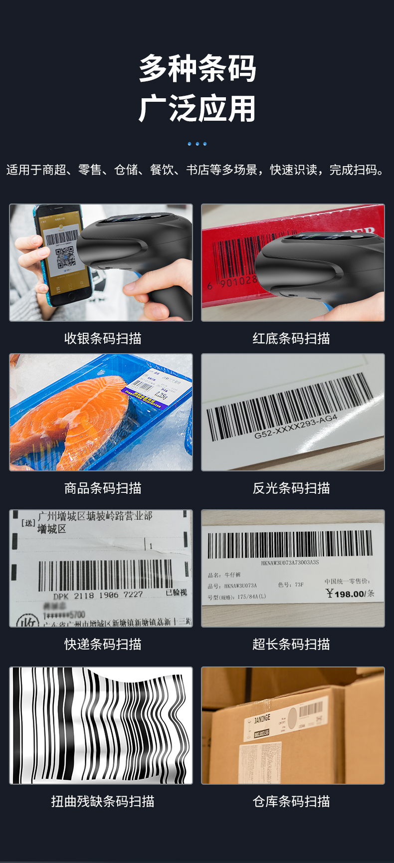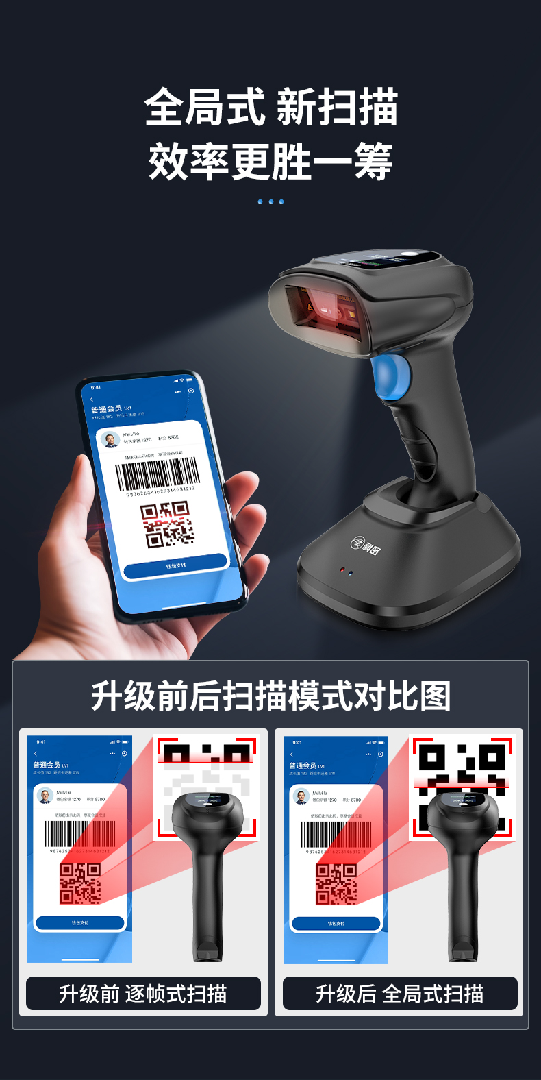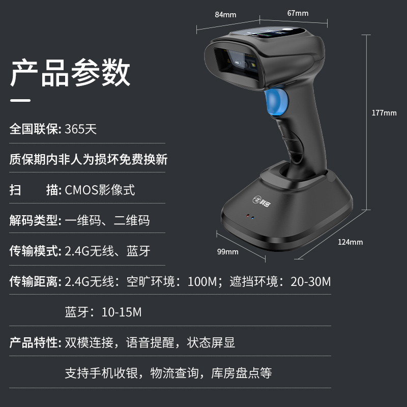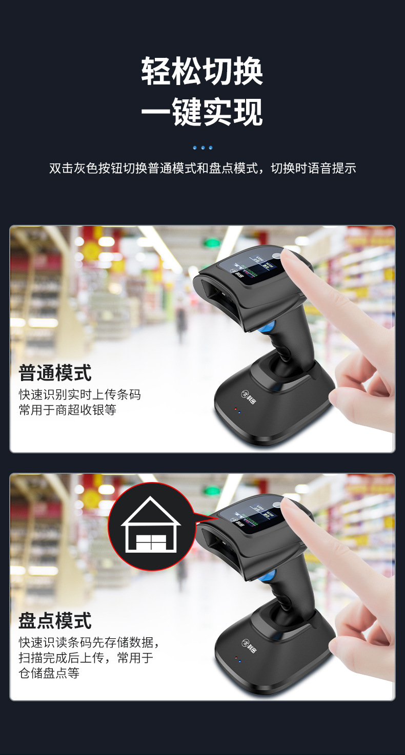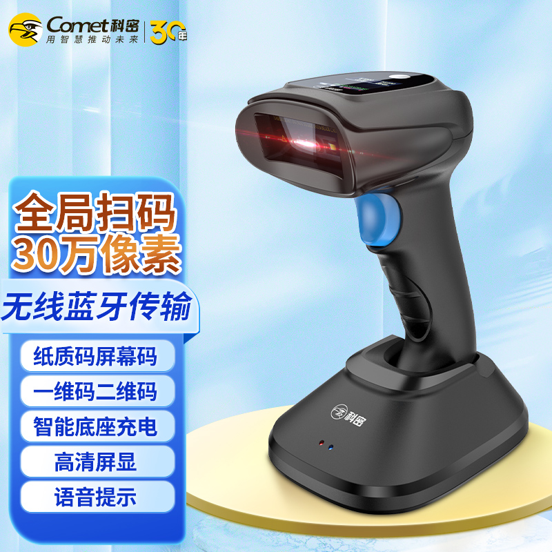 Comet科密T68D带屏幕二维码条码枪无线蓝牙扫描枪收银盘点商超收银扫码枪标配底座