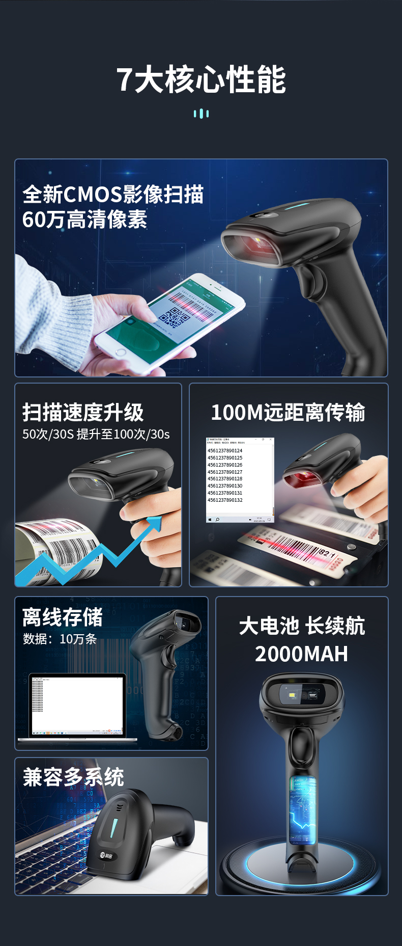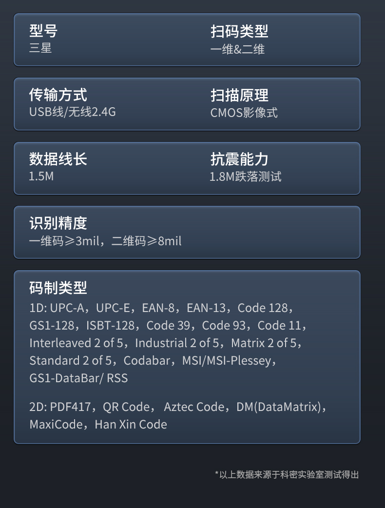 科密(comet)三星无线扫码枪一二维码扫描枪条码枪 收款商超餐饮收银物流盘点医保 支持国产系统