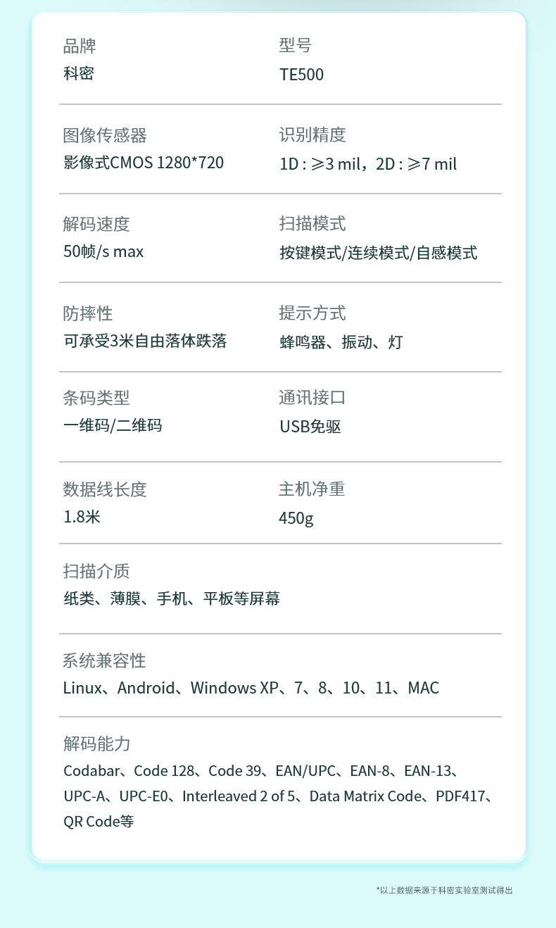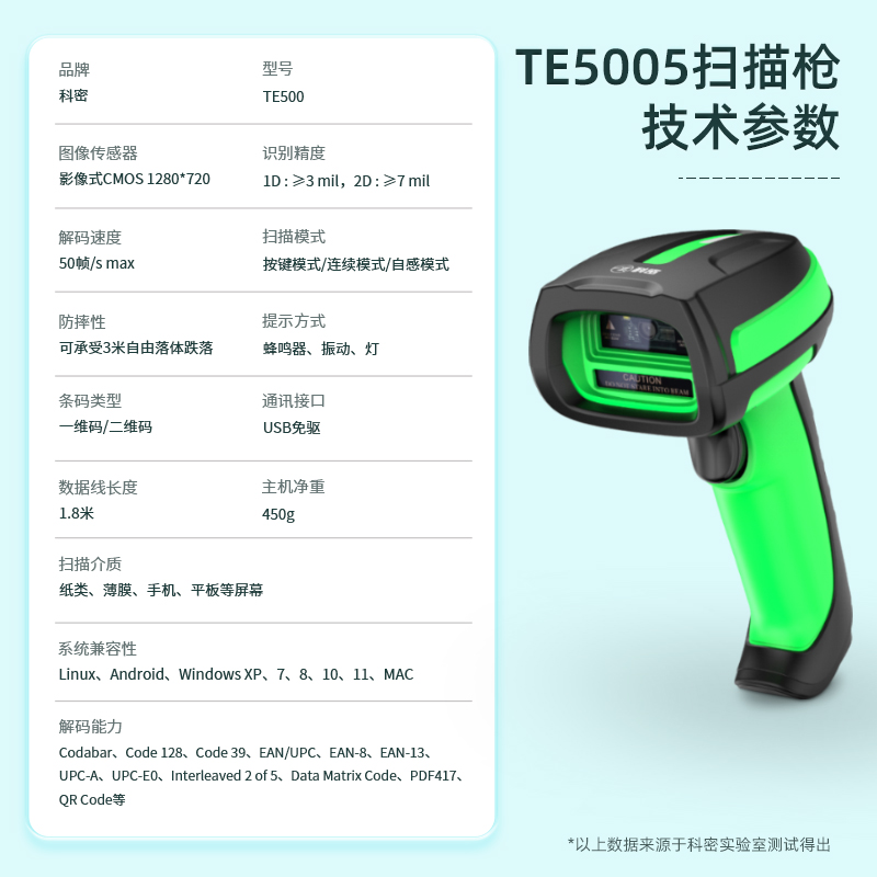 科密(comet)扫码枪一二维码扫描枪有线条码 商品条码仓储物流超市支付扫码器TE500 支持国产系统