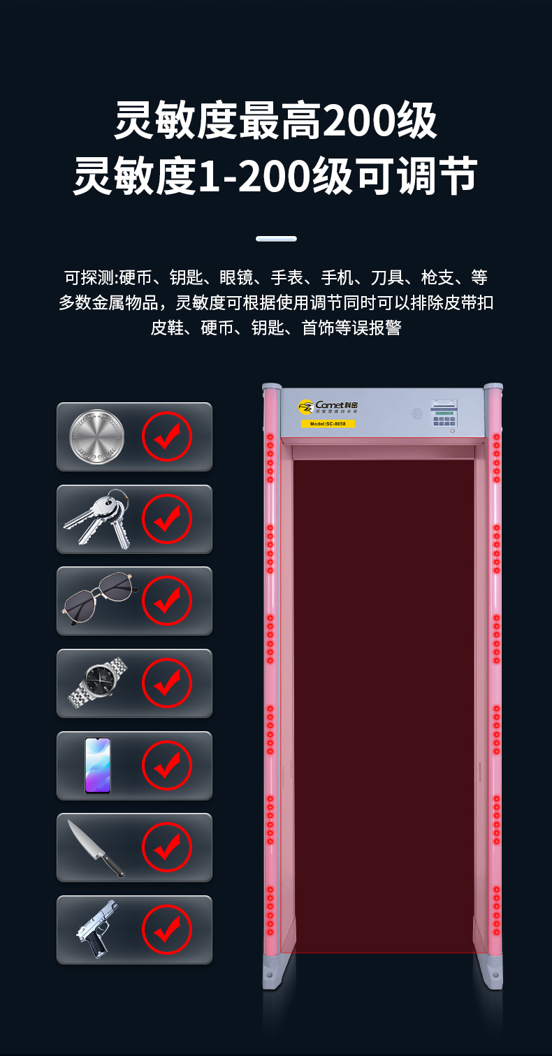 科密安检门金属探测门六区检测工厂防盗手机车站学校公检法SC-8058