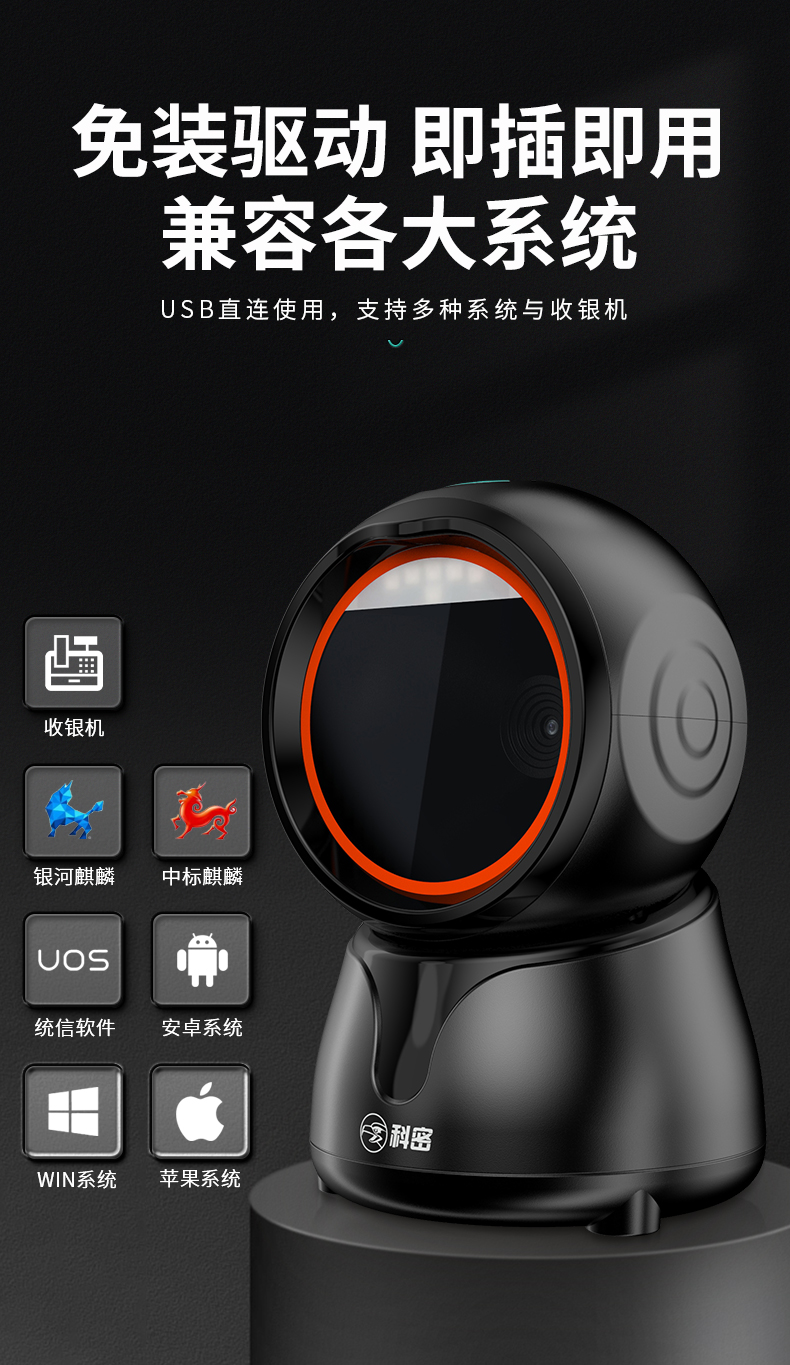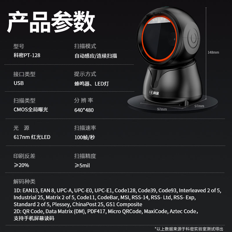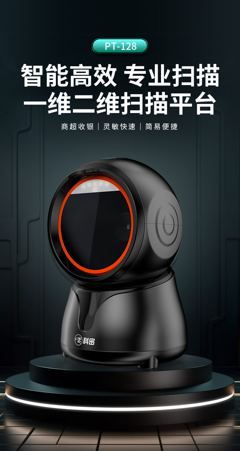 科密(comet)扫码枪扫描枪 二维码扫描盒子 收款器平台 快递物流超市商品收银条码PT-128 支持国产系统