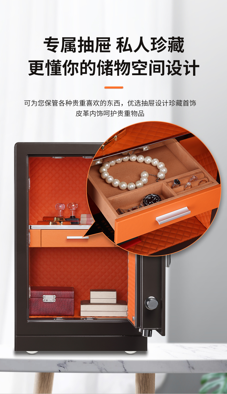 科密 FDG-70Zs全钢办公家用指纹密码保险柜轻奢灰 高70CM