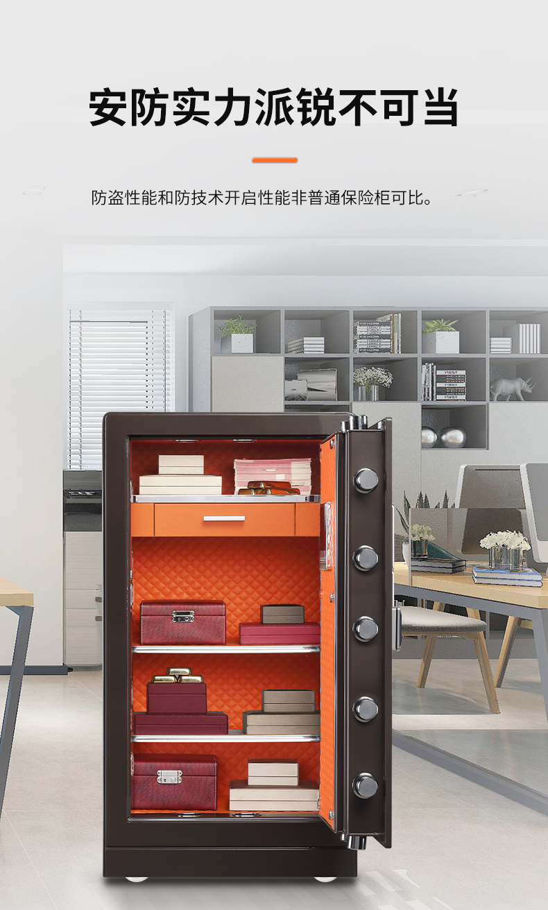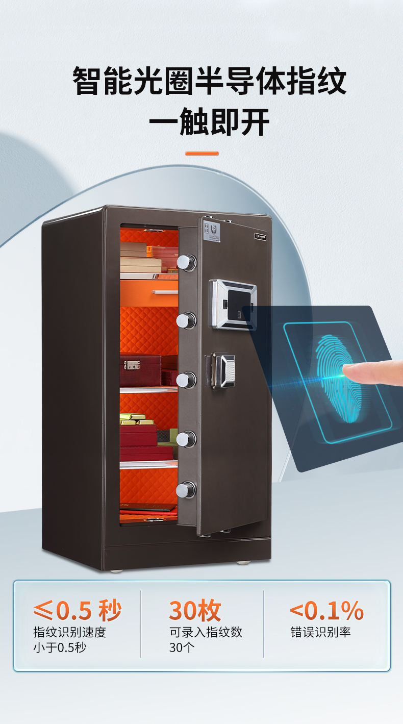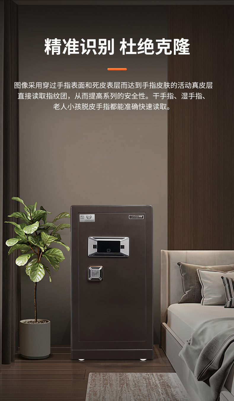 科密 FDG-100Zs全钢办公家用指纹密码保险柜轻奢灰 高100CM