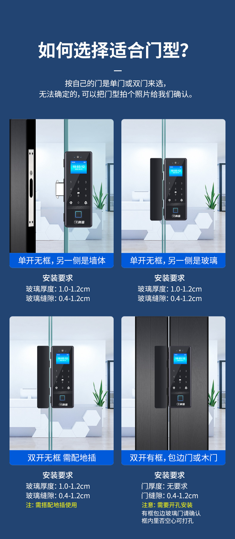 科密(comet)人脸识别玻璃门指纹锁智能电子密码锁办公室玻璃门锁免开孔小程序开锁应急钥匙COM-178A