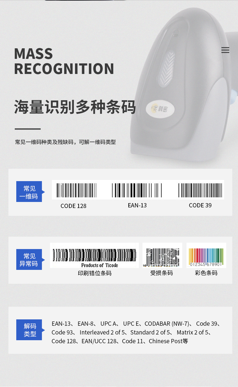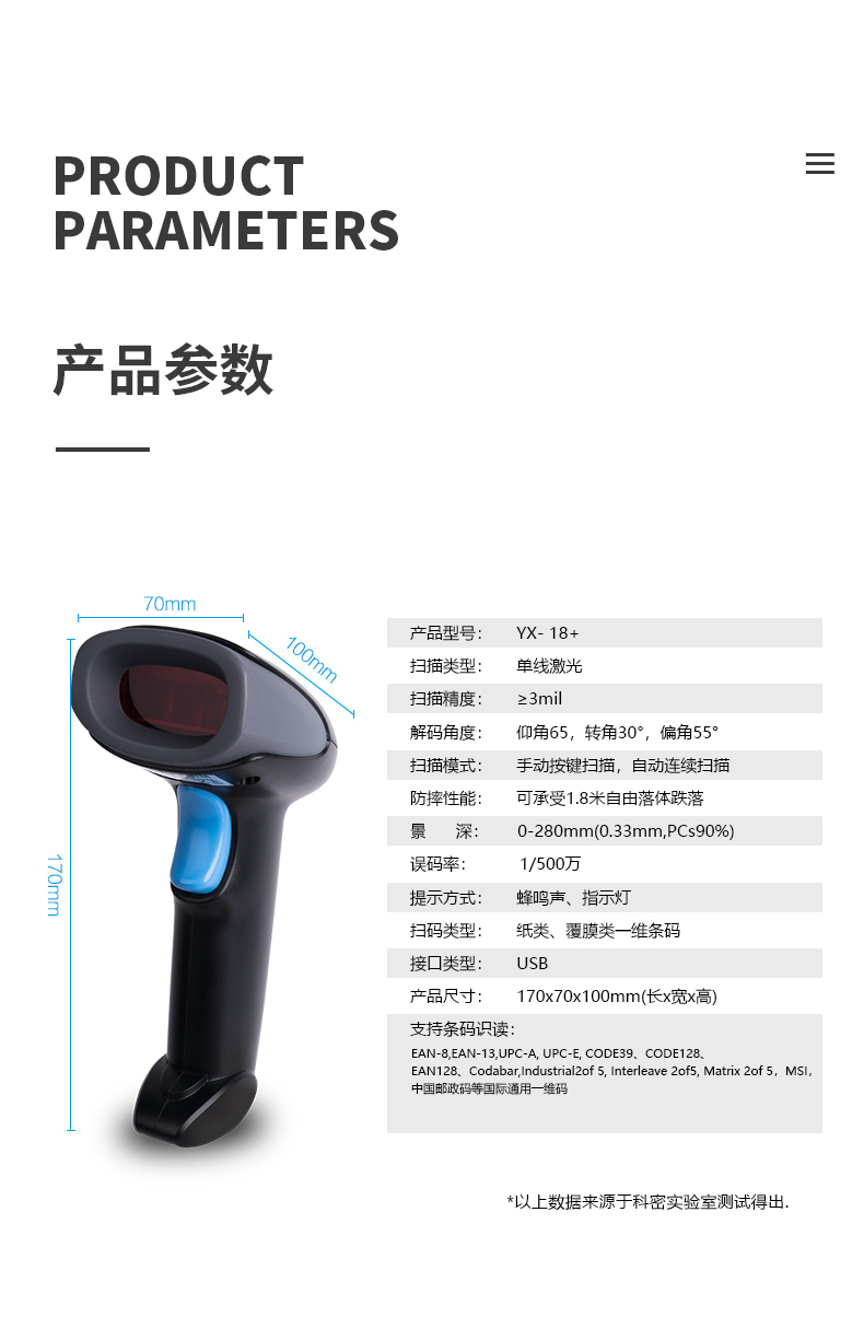 科密(comet)YX-18+ 有线一维码激光扫码枪扫描枪条码枪 快递仓储物流商品盘点出入库 即插即用