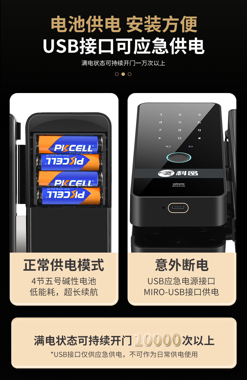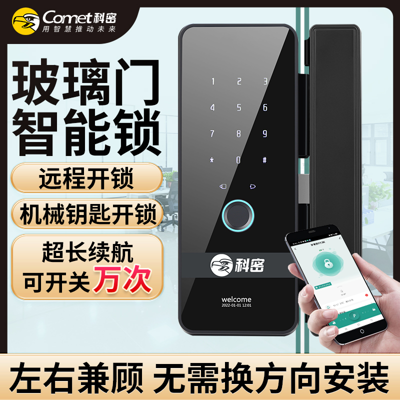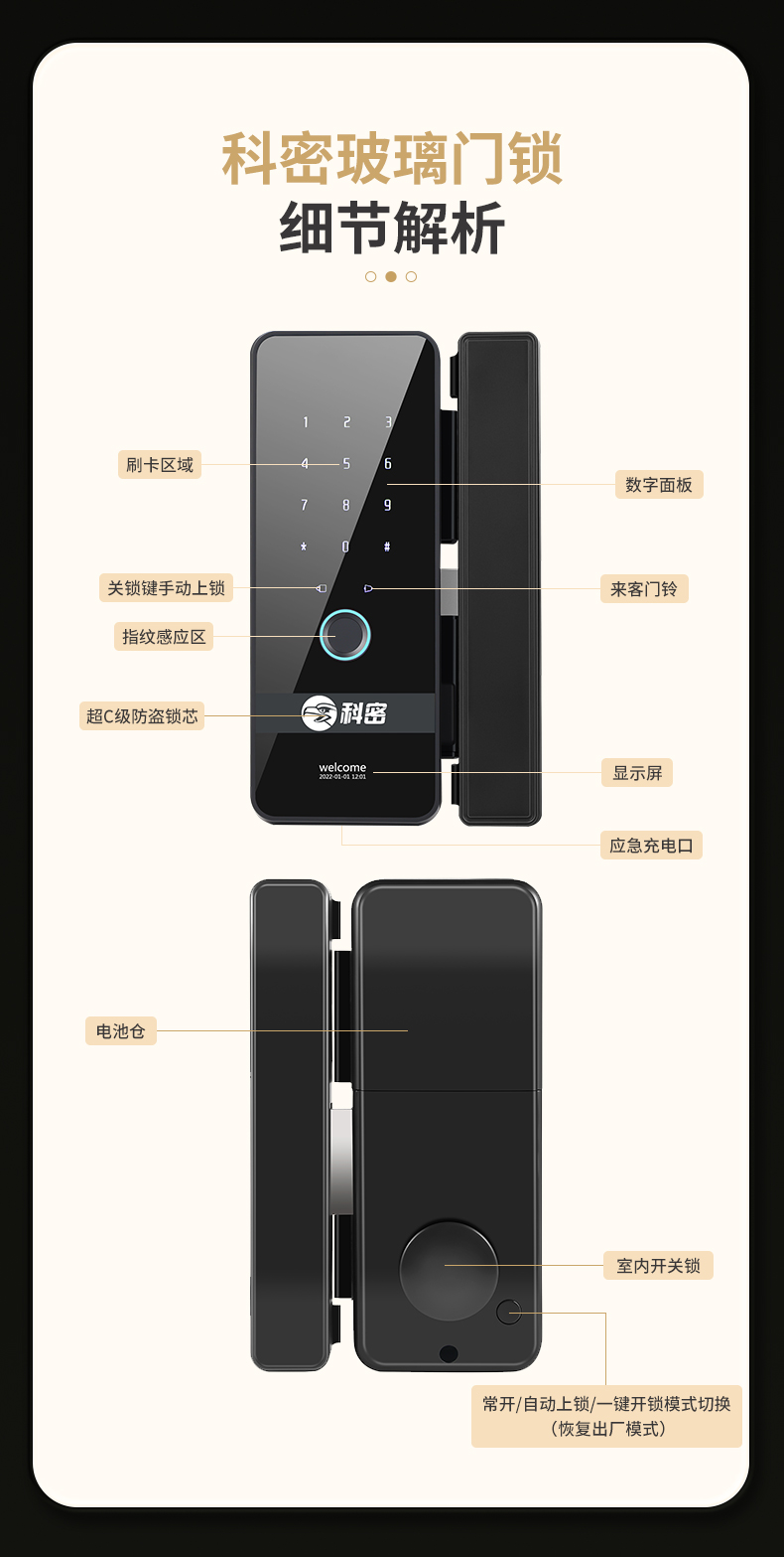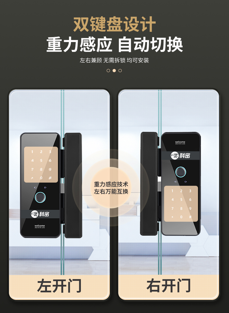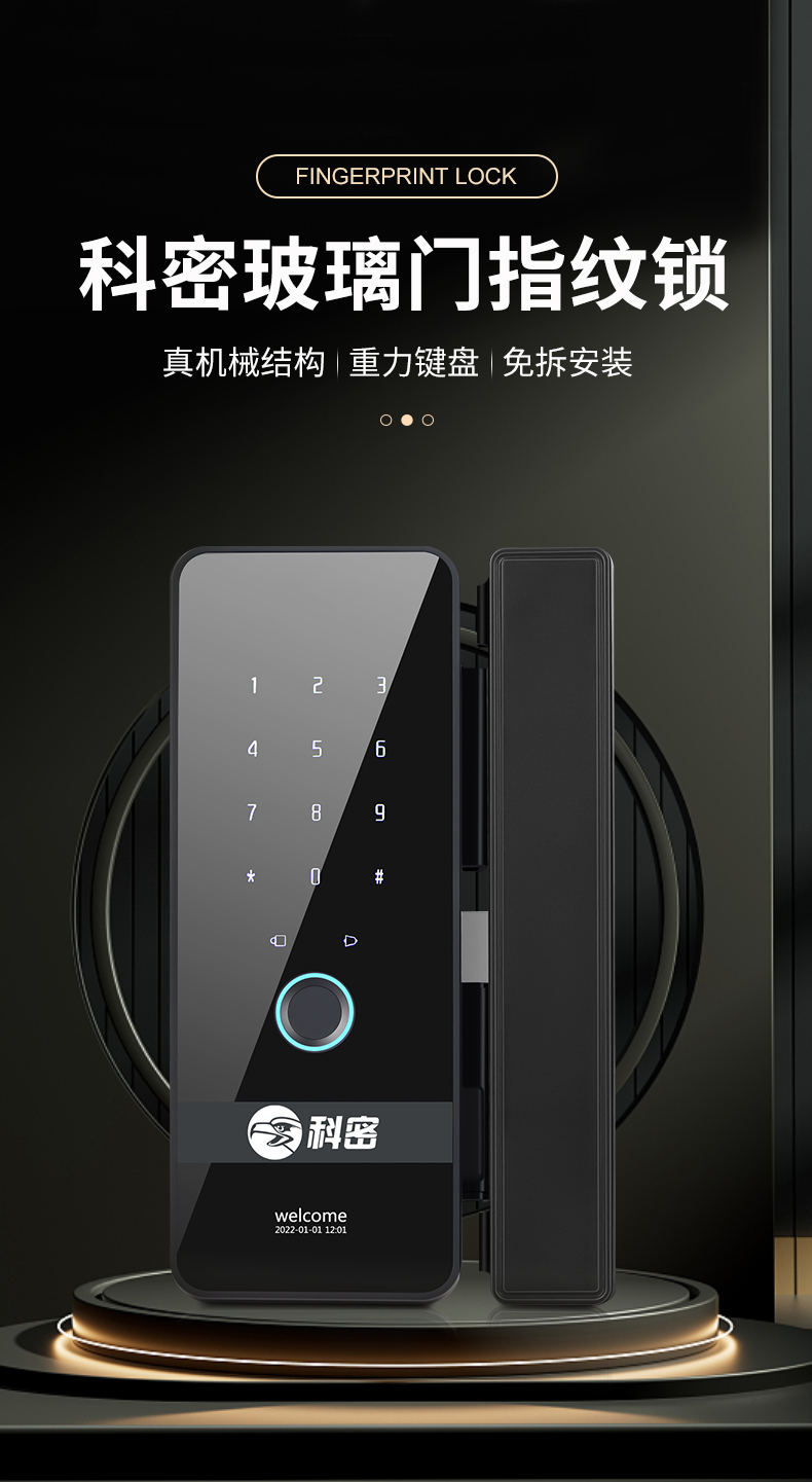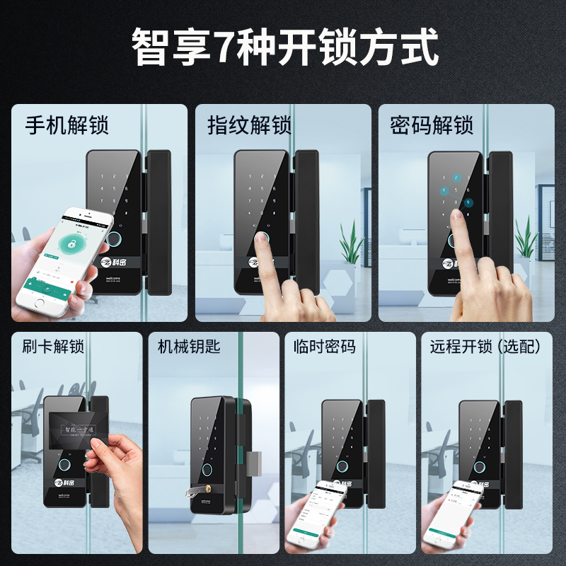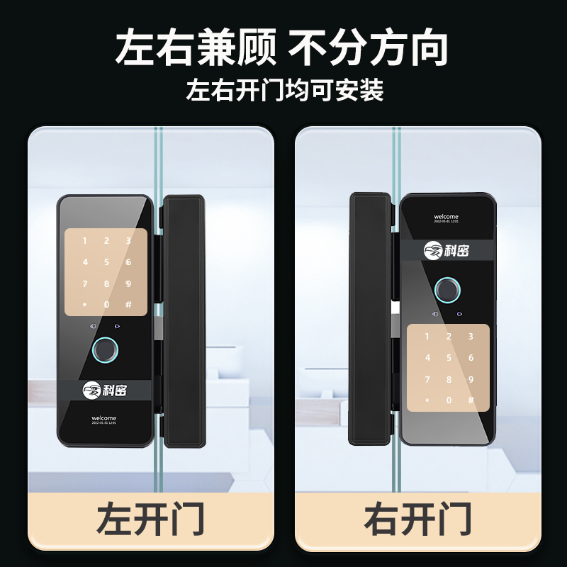 科密智能锁指纹锁公司有框密码锁办公室电子锁玻璃门锁商铺双开门