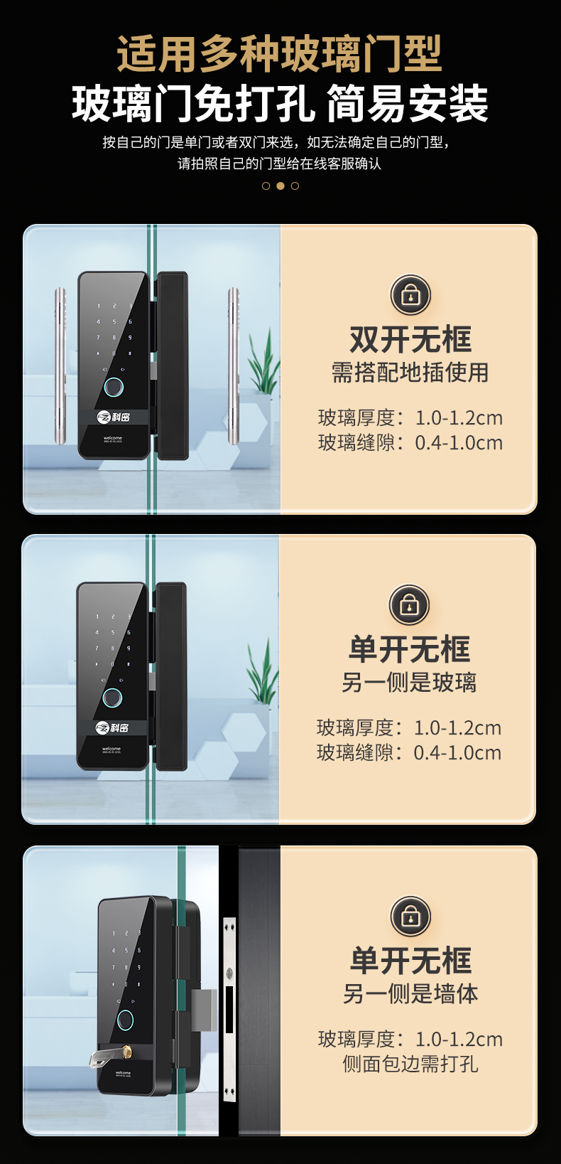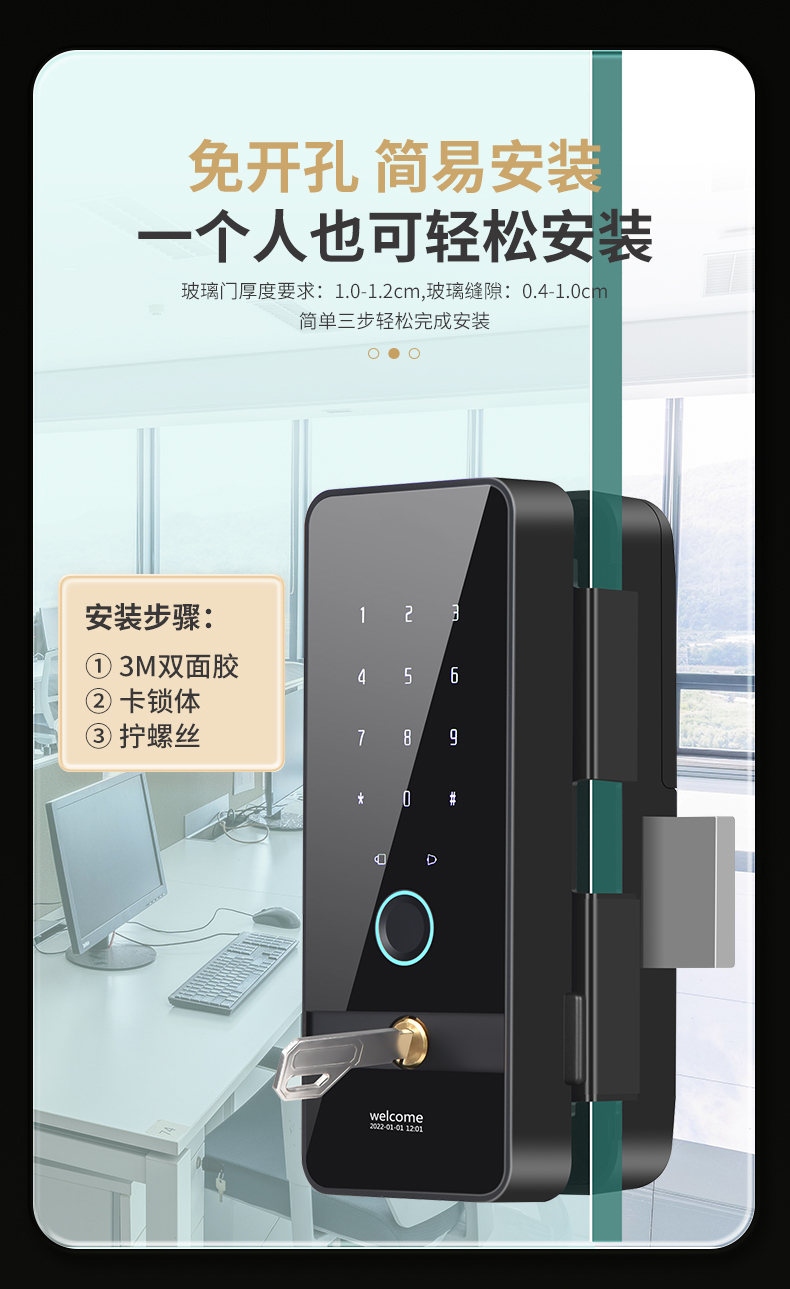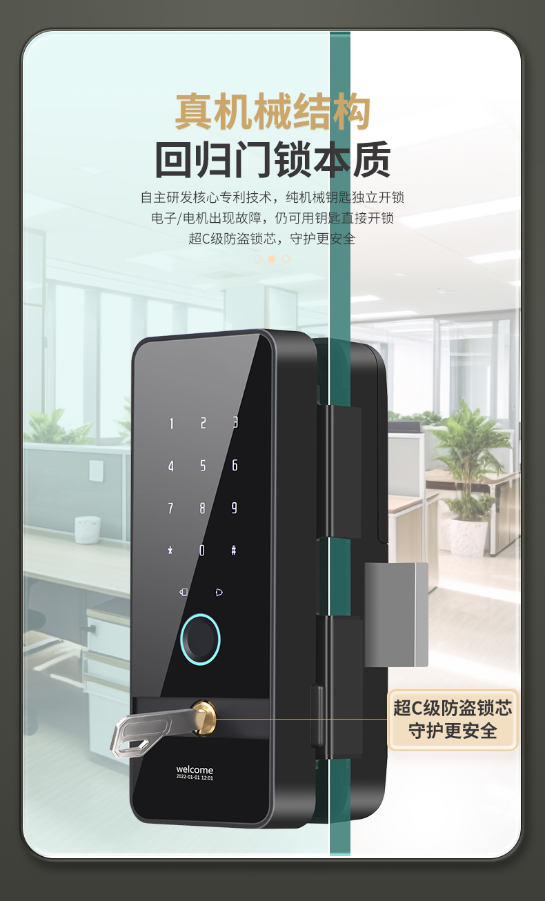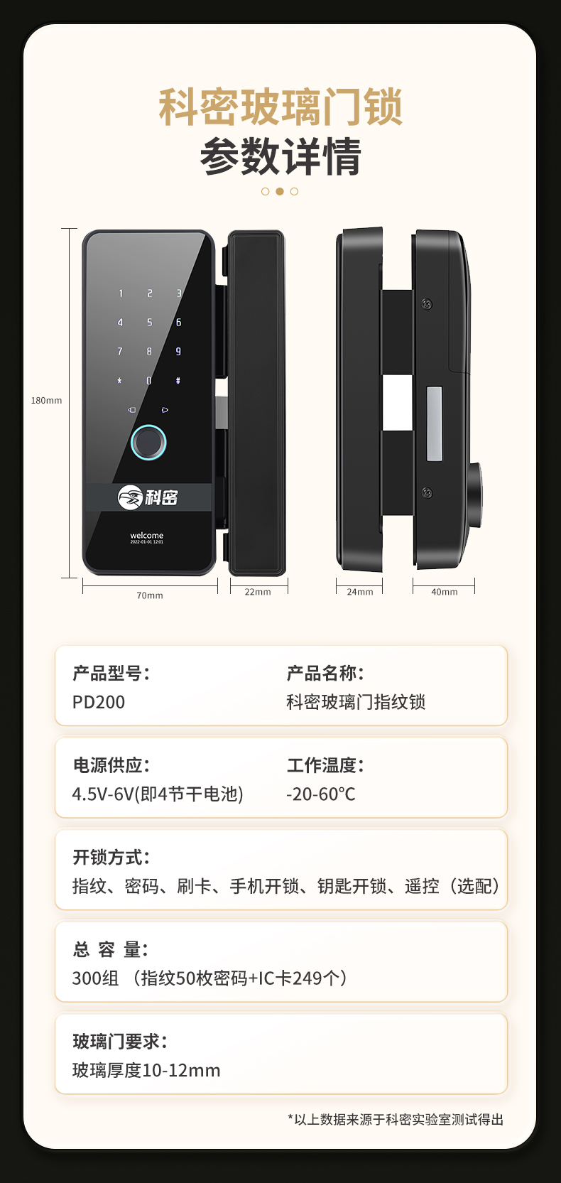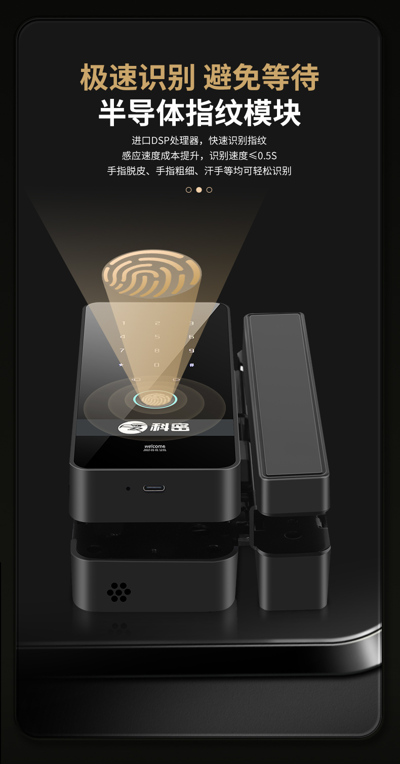 科密智能锁指纹锁公司有框密码锁办公室电子锁玻璃门锁商铺双开门