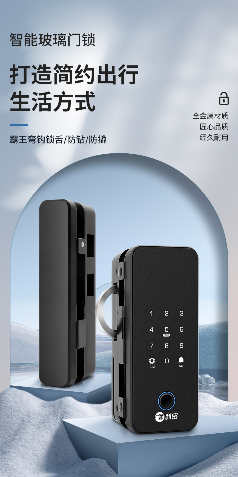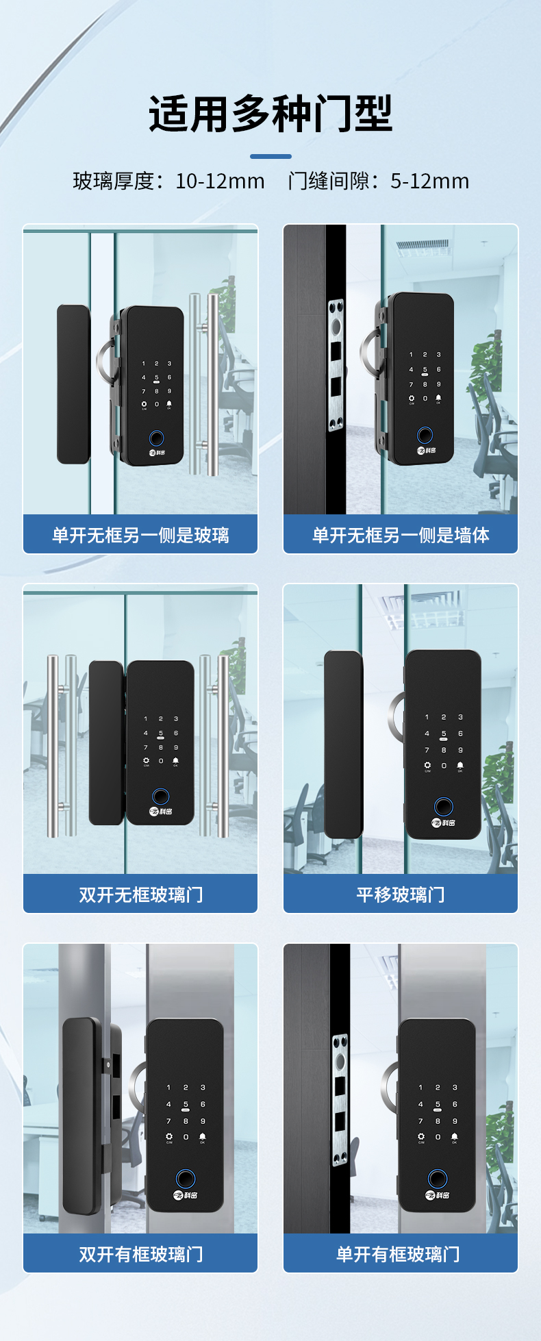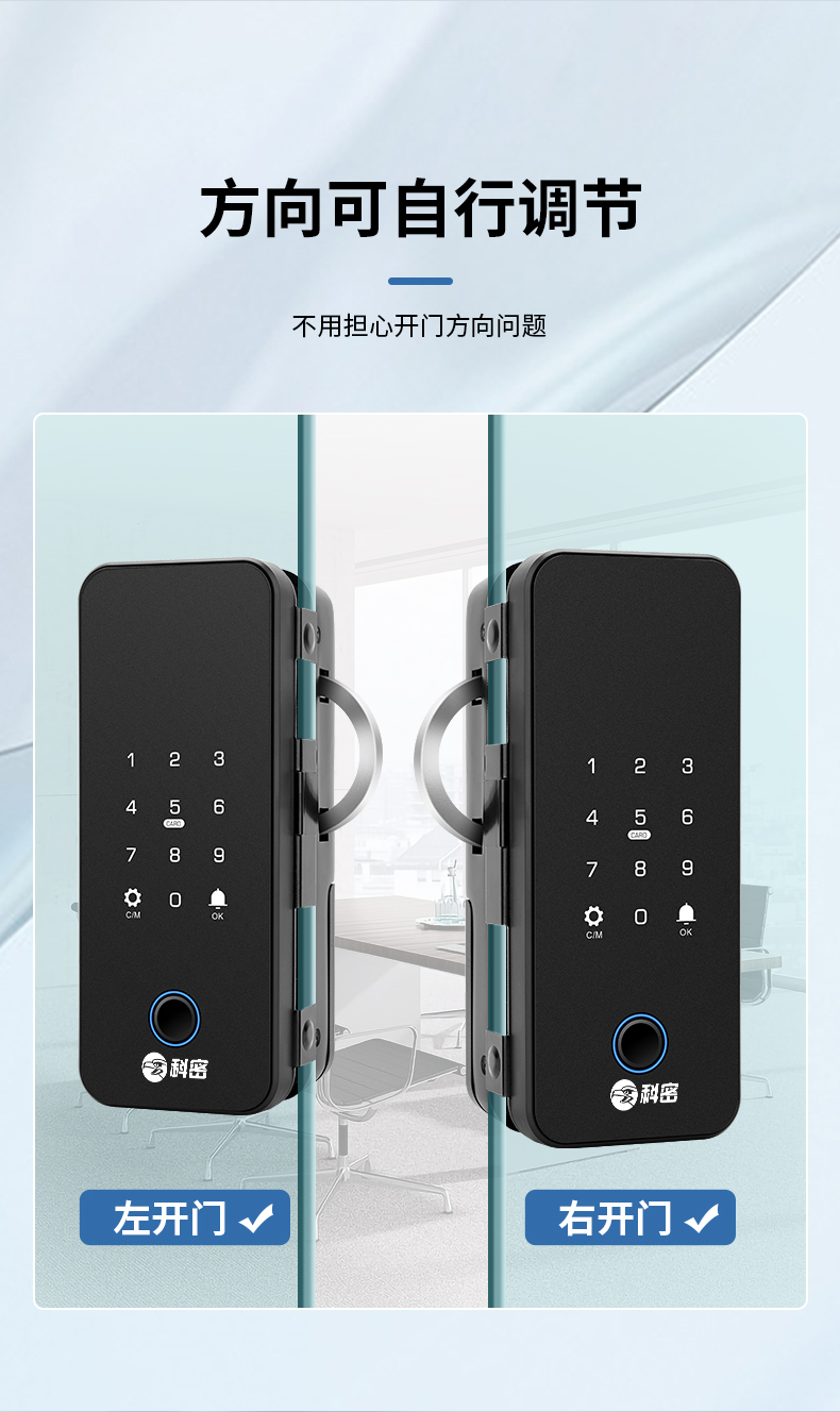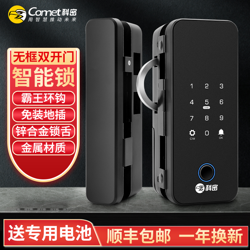 科密智能锁指纹锁公司有框密码锁办公室电子锁玻璃门锁商铺双开门