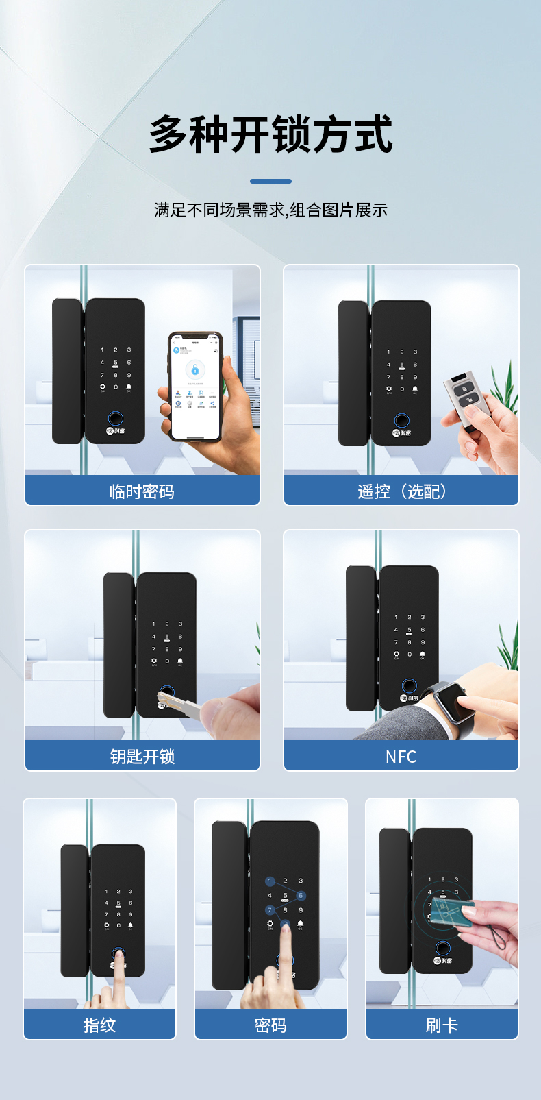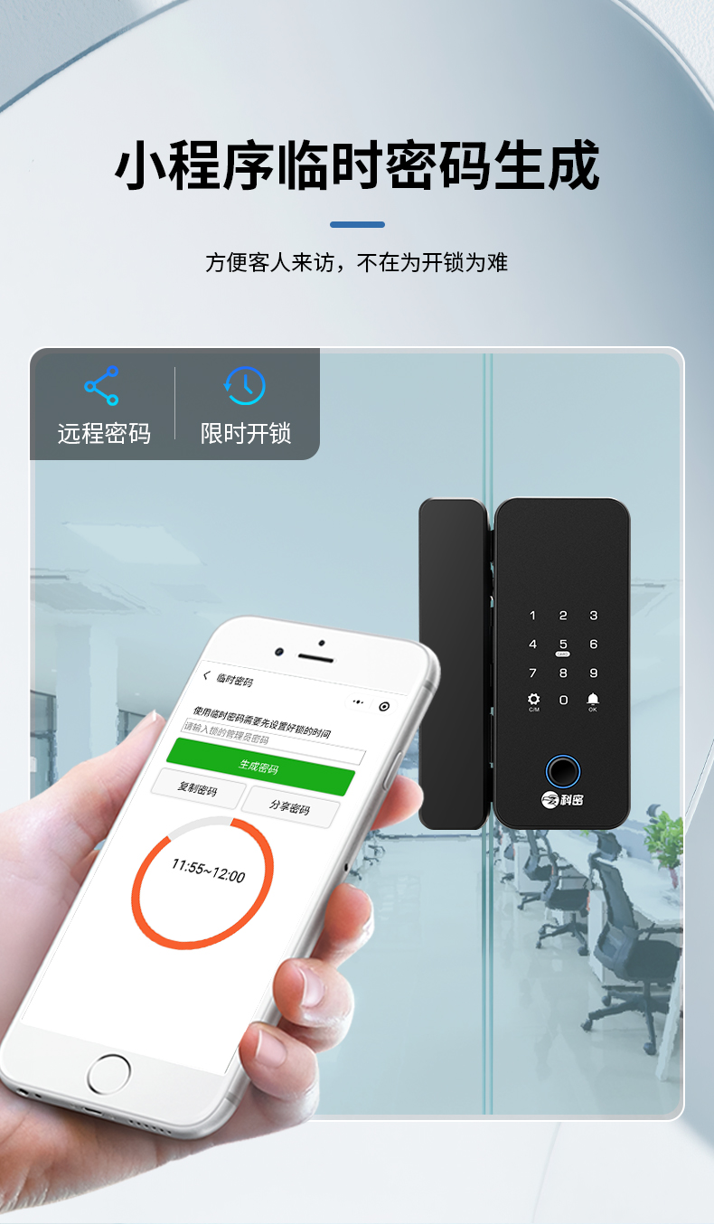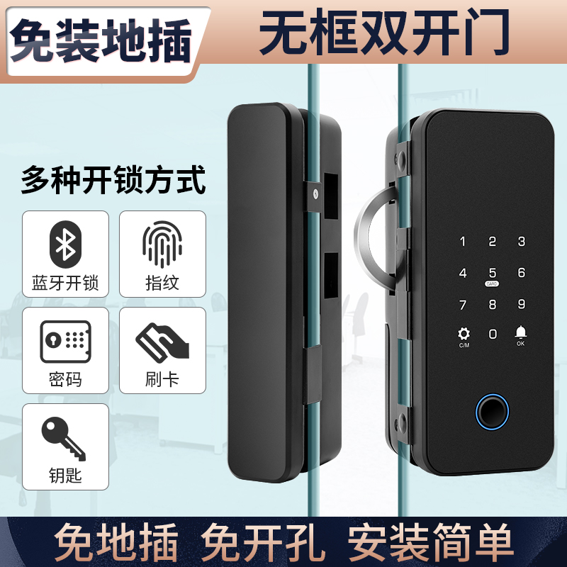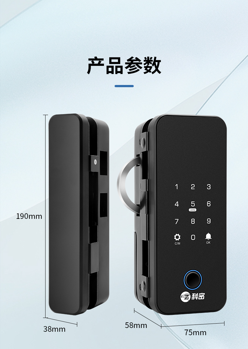 科密智能锁指纹锁公司有框密码锁办公室电子锁玻璃门锁商铺双开门