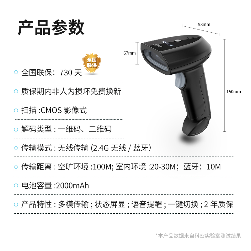 科密(comet)蓝牙扫描枪一维二维码无线扫码枪条码扫描器 餐饮商超收银仓储盘点物流医保商品条码TE300W