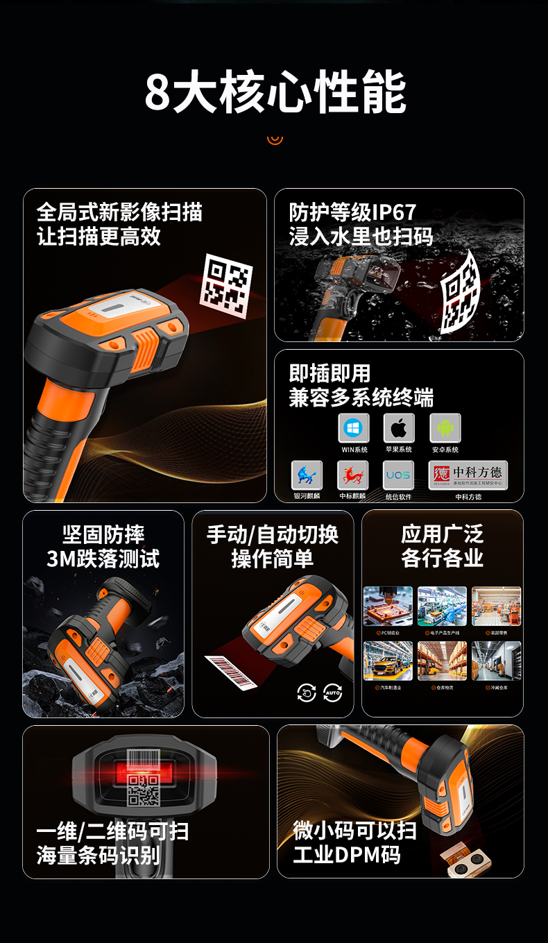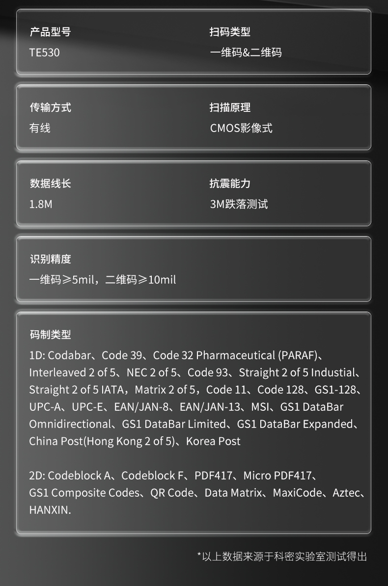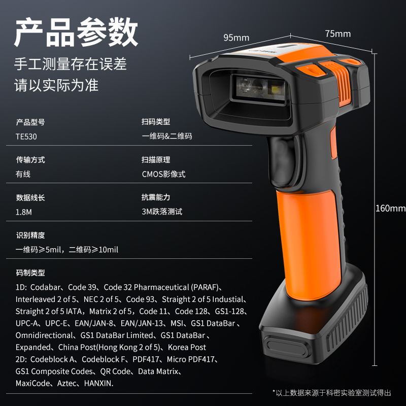 科密(comet) 有线扫码枪条形码 一二维码工业扫描枪 商超仓储物流条码扫描器TE530 支持国产系统