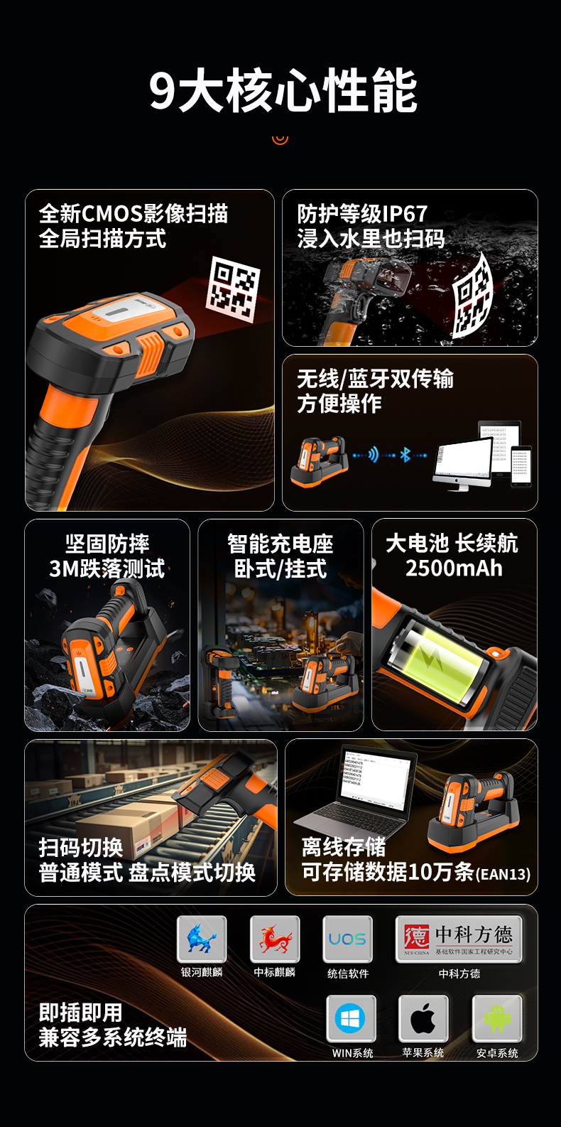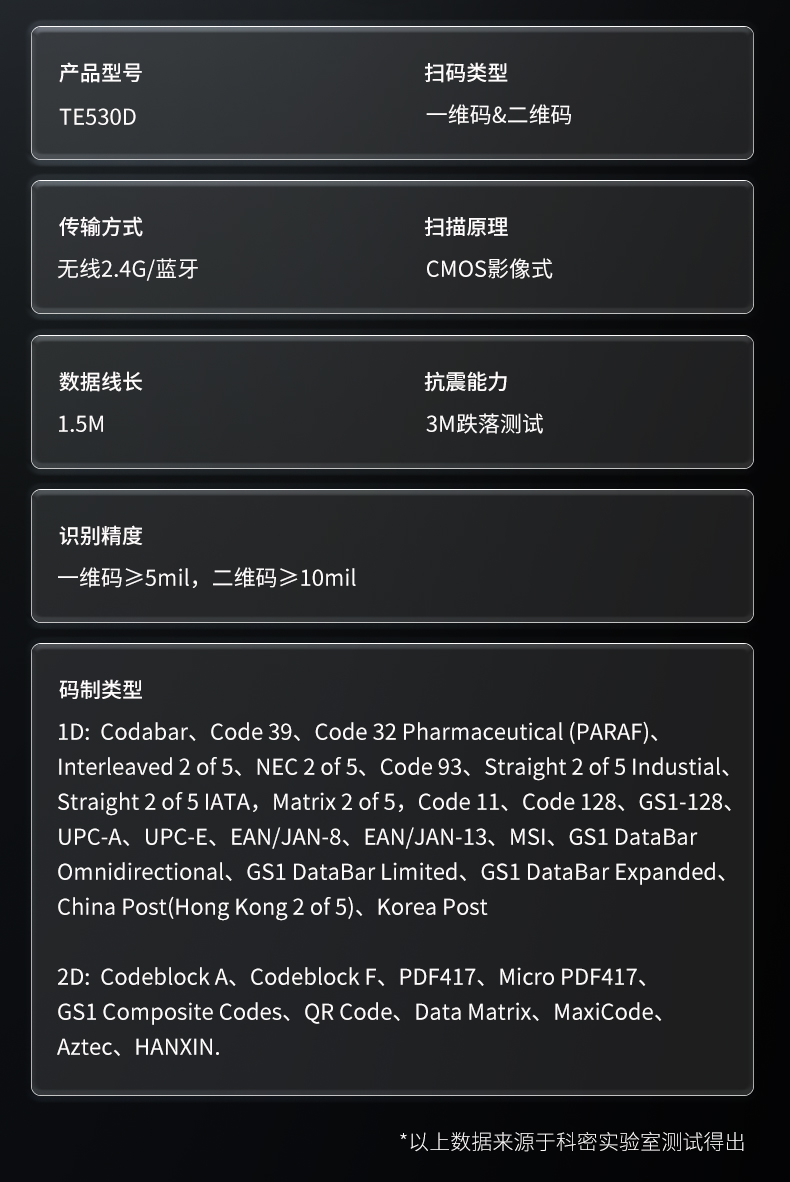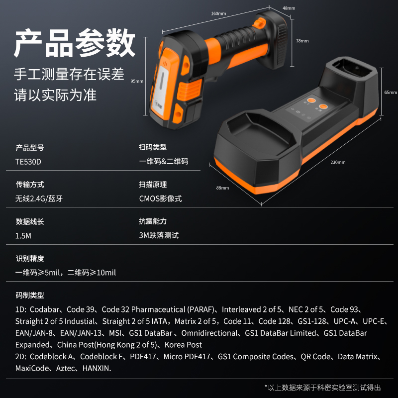 科密(comet)无线扫码枪条形码 一二维码工业扫描枪 超市仓储物流条码扫描器TE530D 支持国产系统