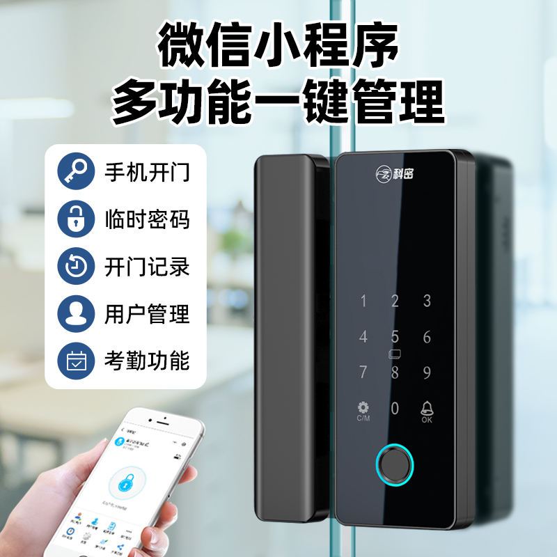 科密TOM-170玻璃门密码锁有框无框单双开门办公室免开孔智能电子指纹门锁