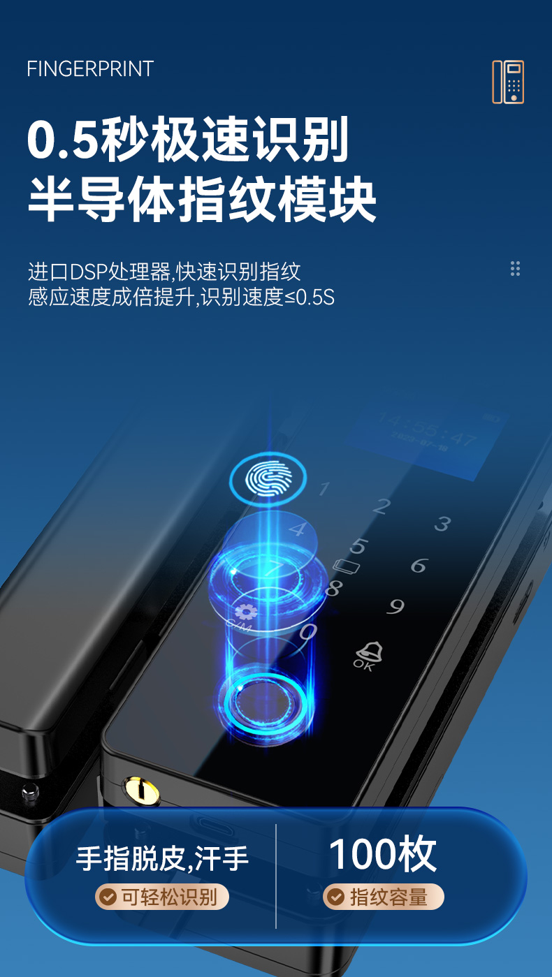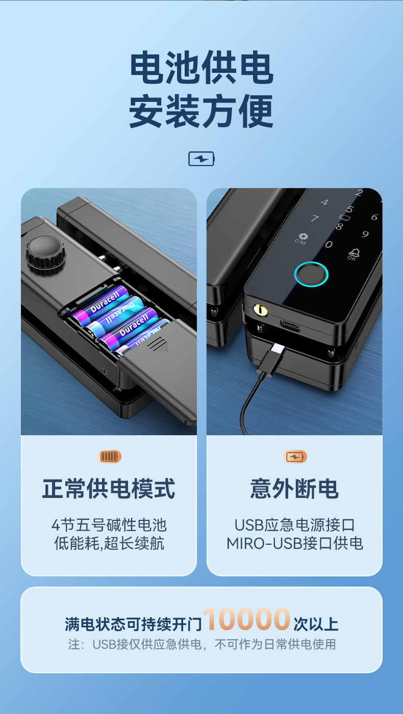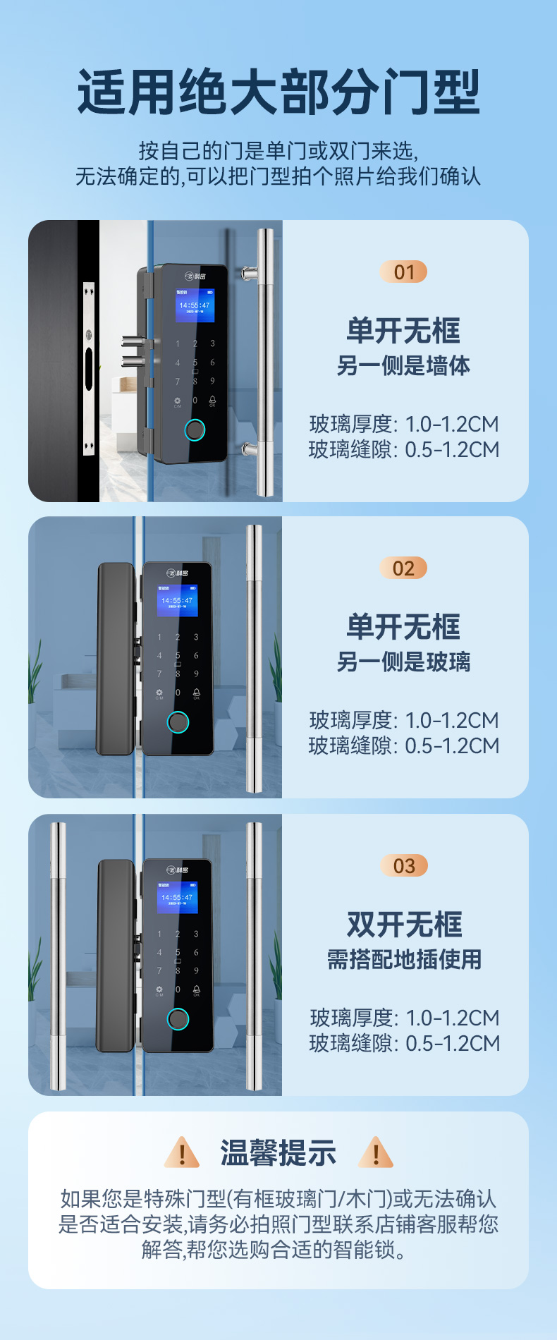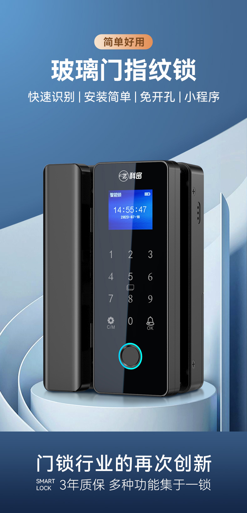 科密TOM-171玻璃门密码锁有框无框单双开门办公室免开孔智能电子指纹门锁