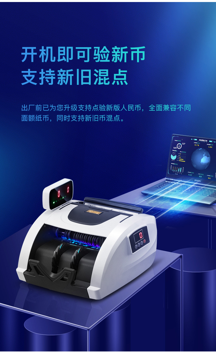 科密(comet)验钞点钞机支持新版人民币 小型家用商用收银支付 新旧混点语音便携双屏C级数钞机S1