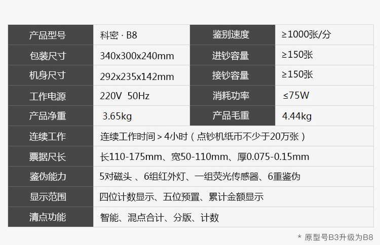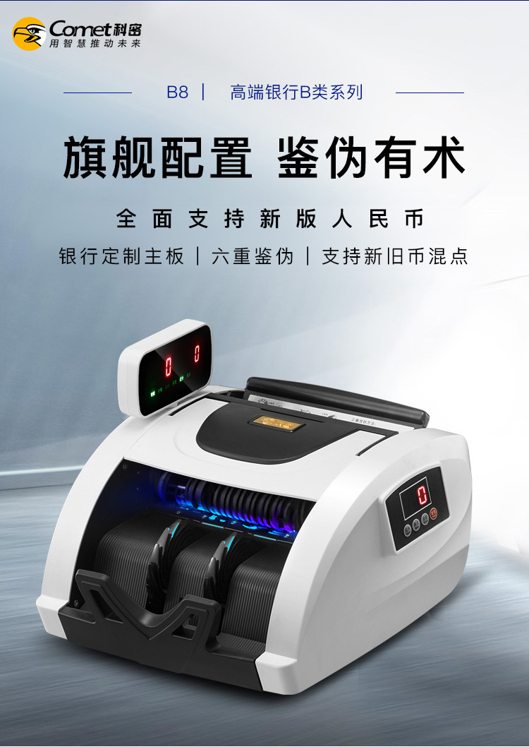科密(comet)新版人民币验钞点钞机 国标B类点钞机银行专用商用 智能语音双屏新旧混点 B8