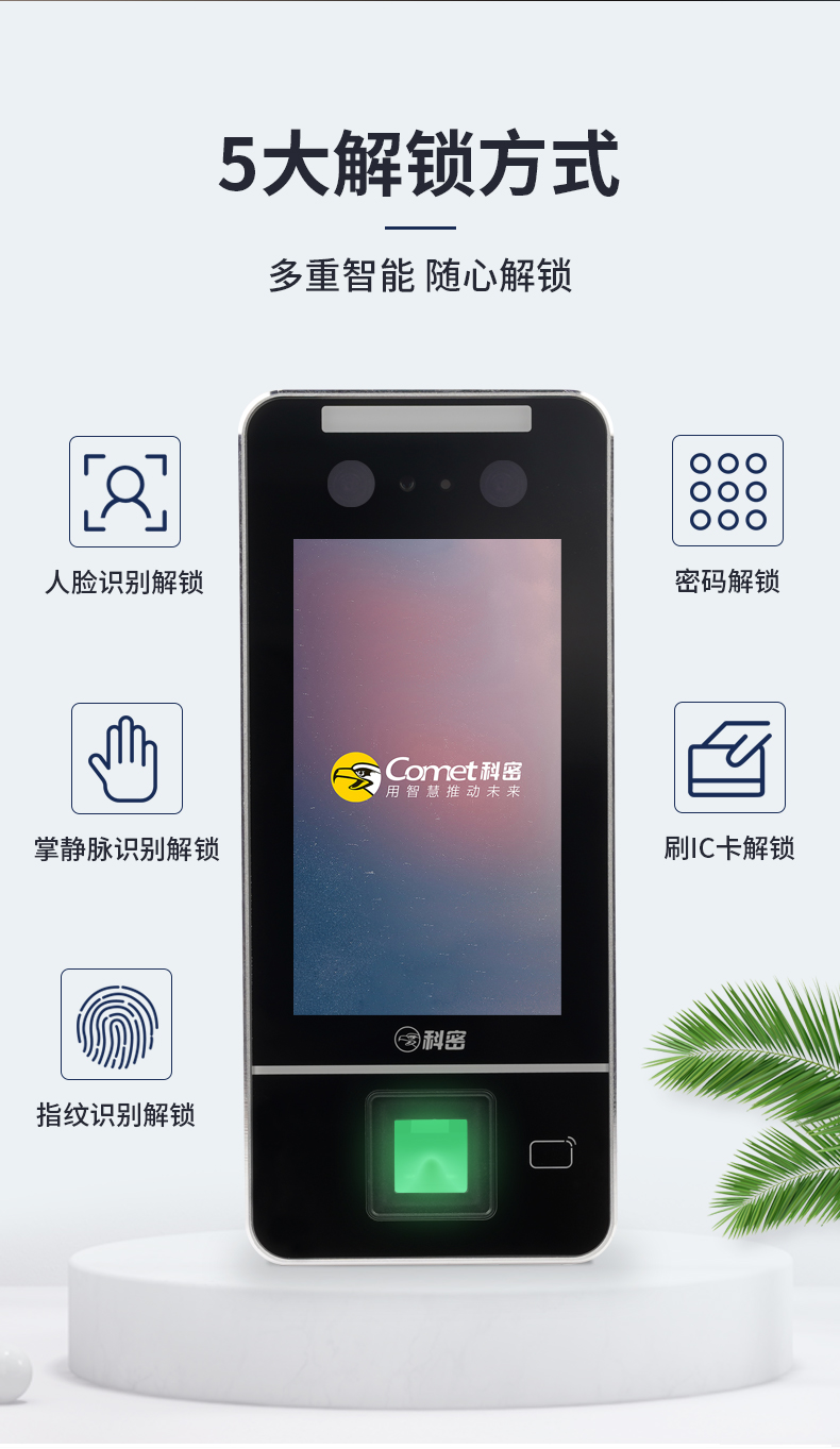 科密 人脸指纹识别考勤机打卡机 门禁一体机 人脸掌静脉指纹密码刷卡一卡通门禁一体机 MF-910C