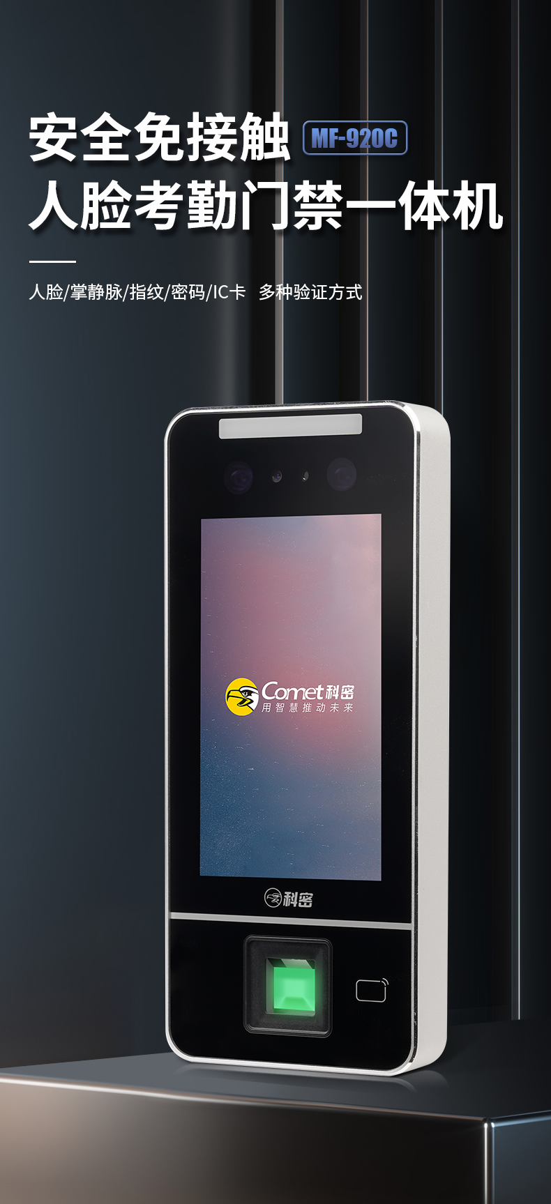 科密 MF-920C 人脸指纹识别考勤机 打卡机 门禁一体机 WIFI连接人脸掌静脉指纹密码刷卡一卡通 门禁一体机 国产品牌