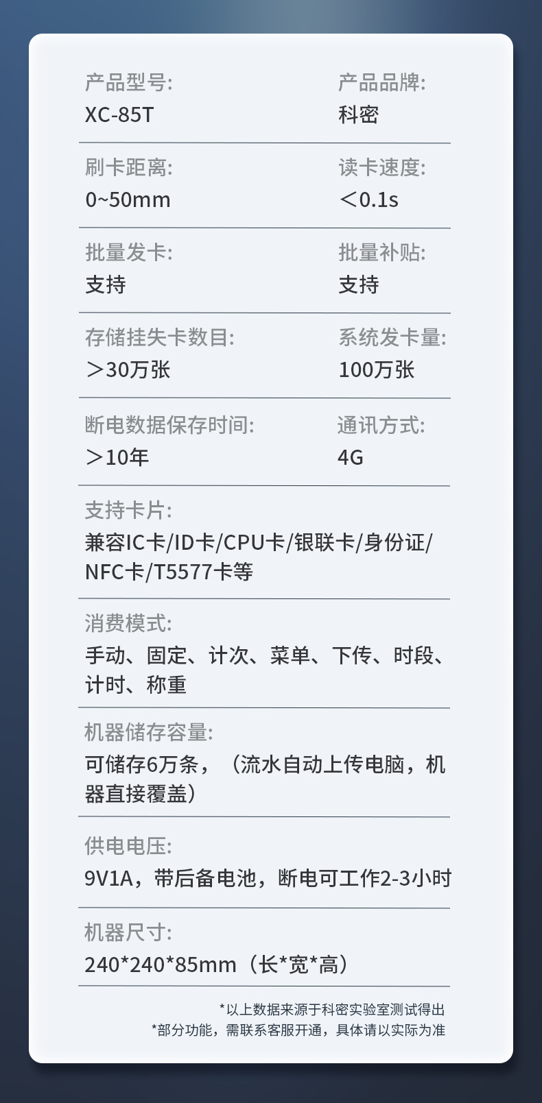 XC-85T 4G科密消费机