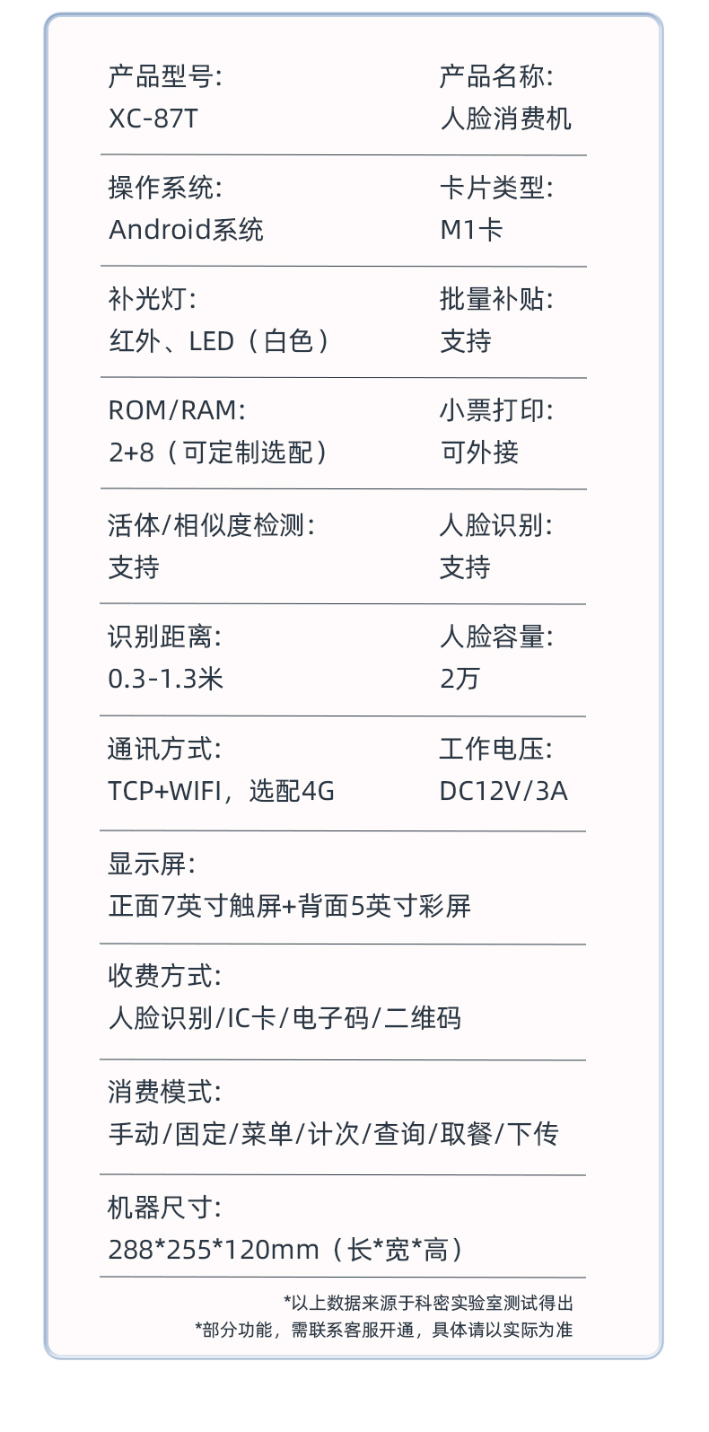科密(comet) XC-87T人脸消费机收款机 学校单位工厂食堂刷卡消费机 支持人脸电子码IC卡支
