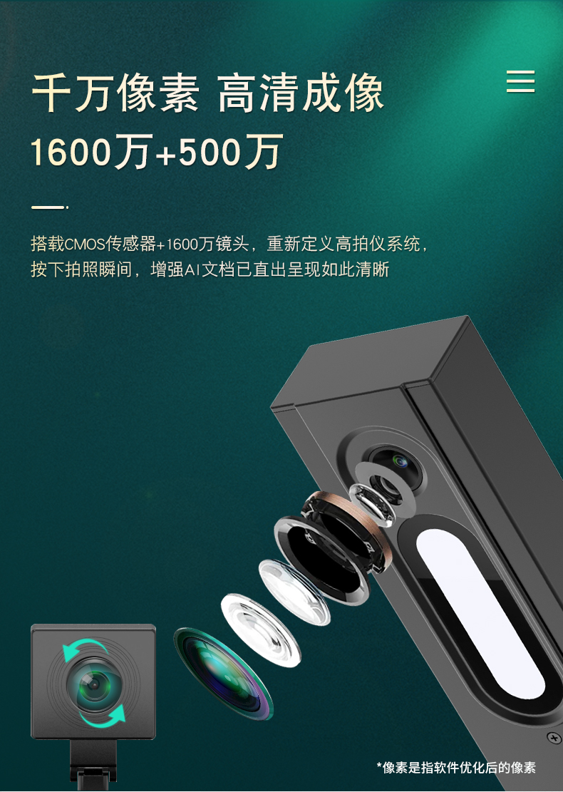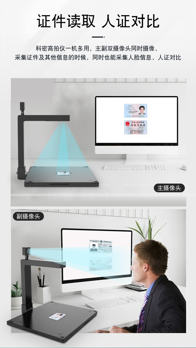 科密 D4313 高拍仪 1600万+500万高清像素 A3A4文件资料合同OCR扫描仪