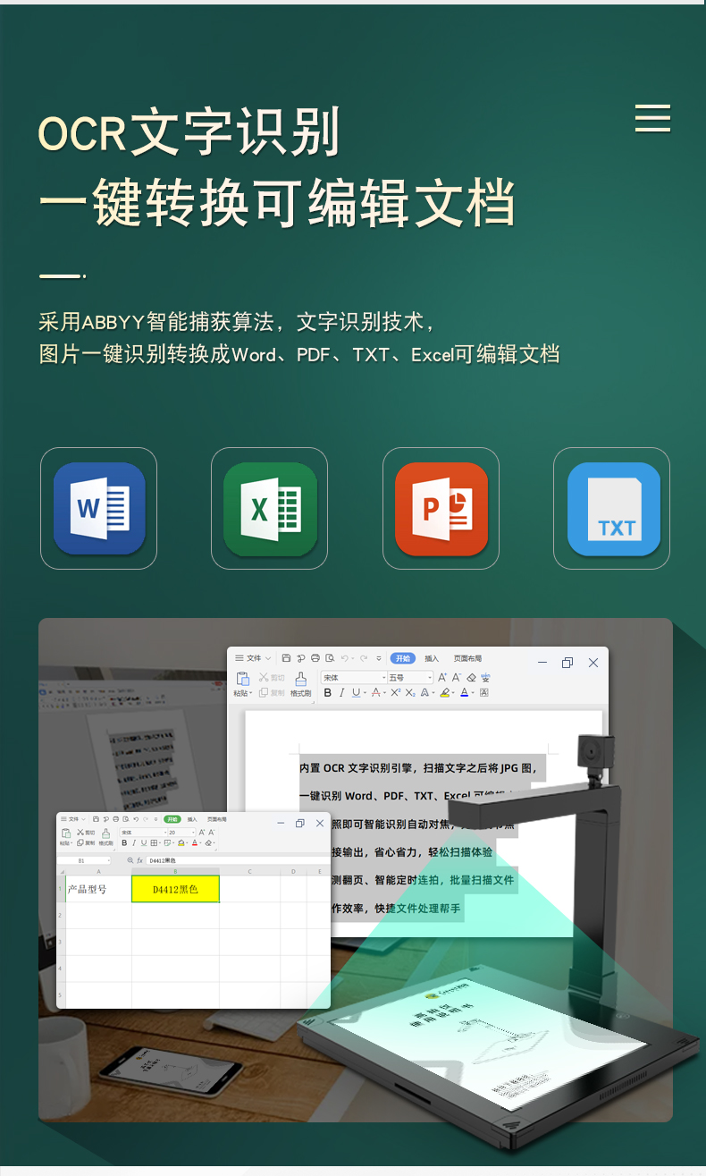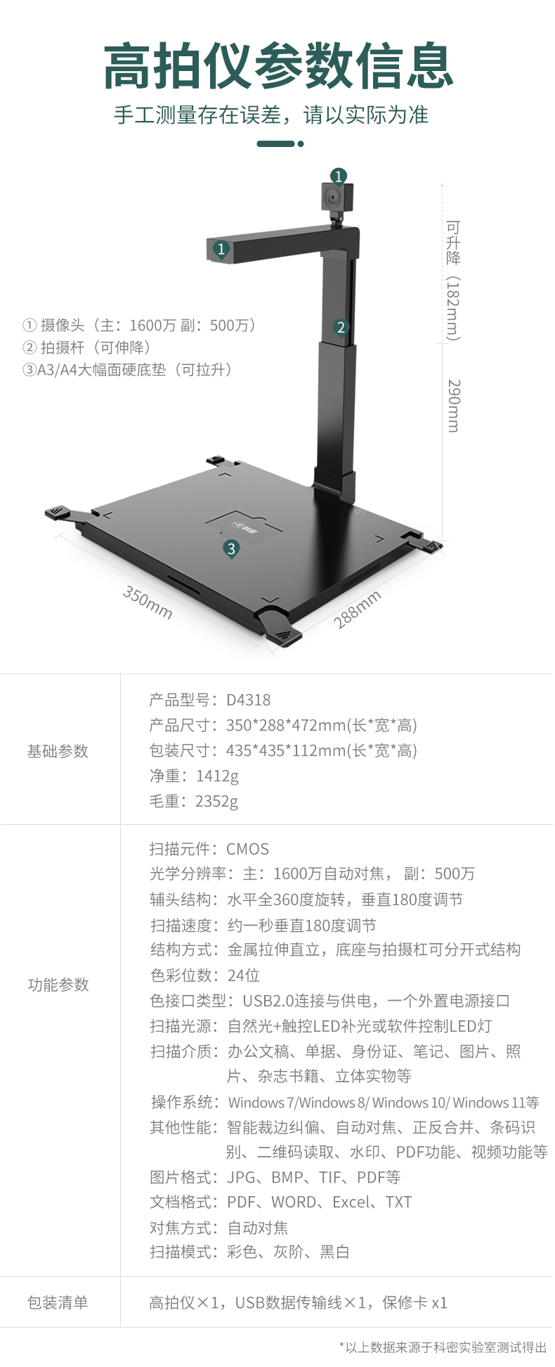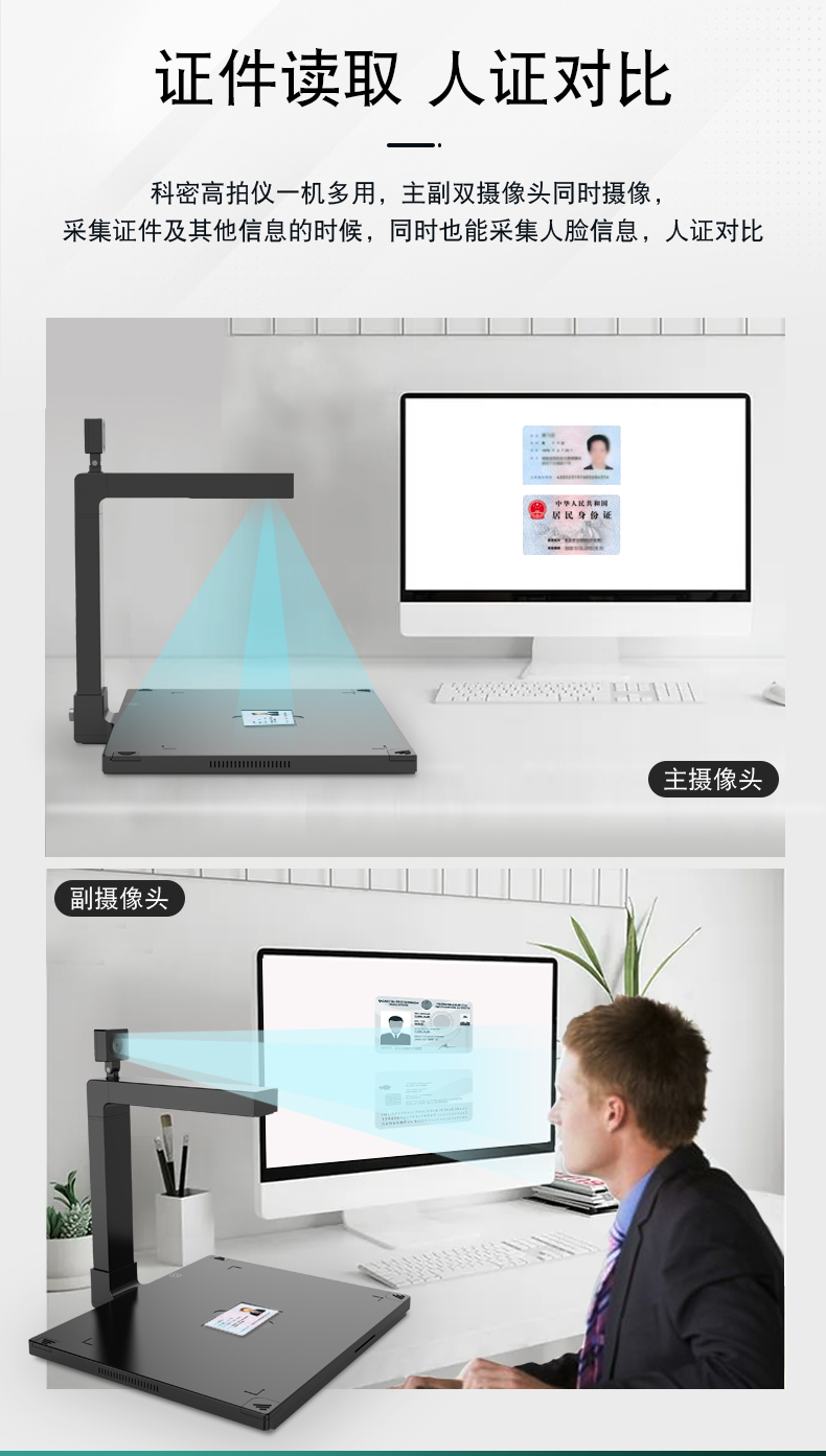 科密 D4318 高拍仪 1600万+500万高清像素 A3A4 身份证阅读器 OCR文件扫描仪