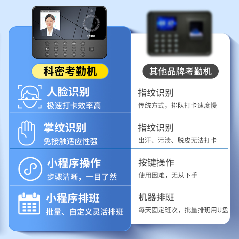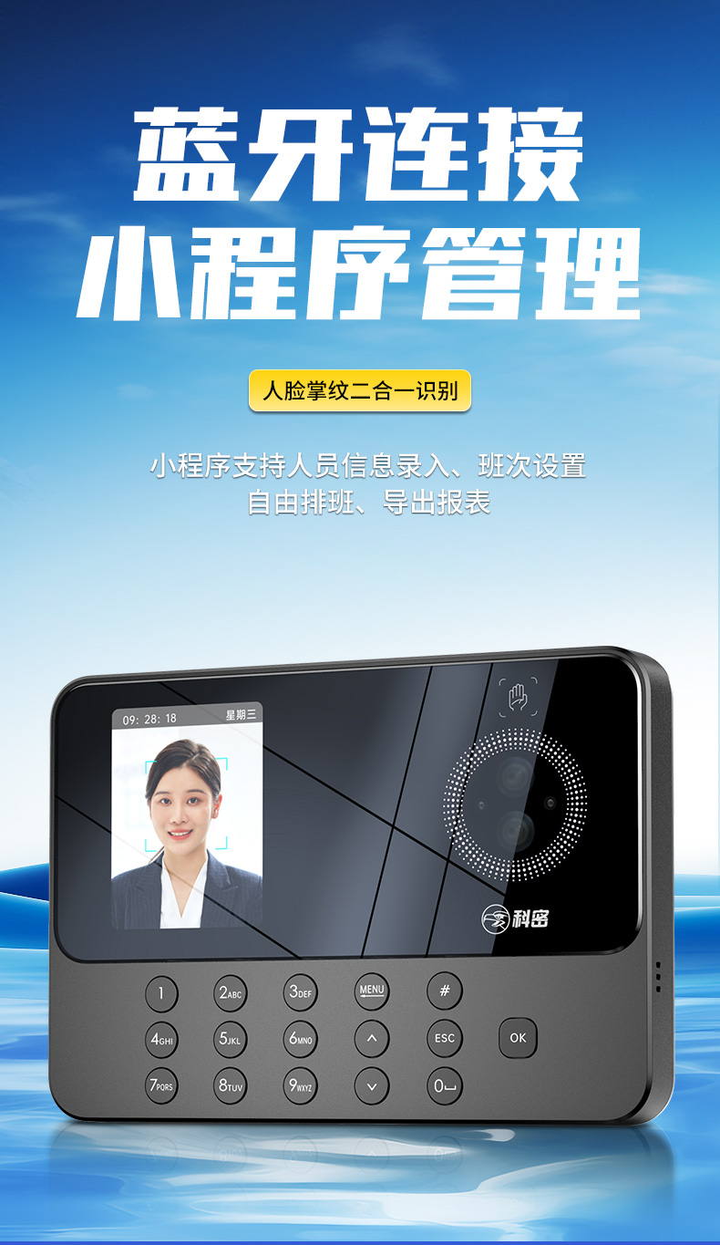 科密(comet)考勤机 打卡机人脸+掌纹识别考勤机 蓝牙连接 小程序管理 自动生成报表PV10W