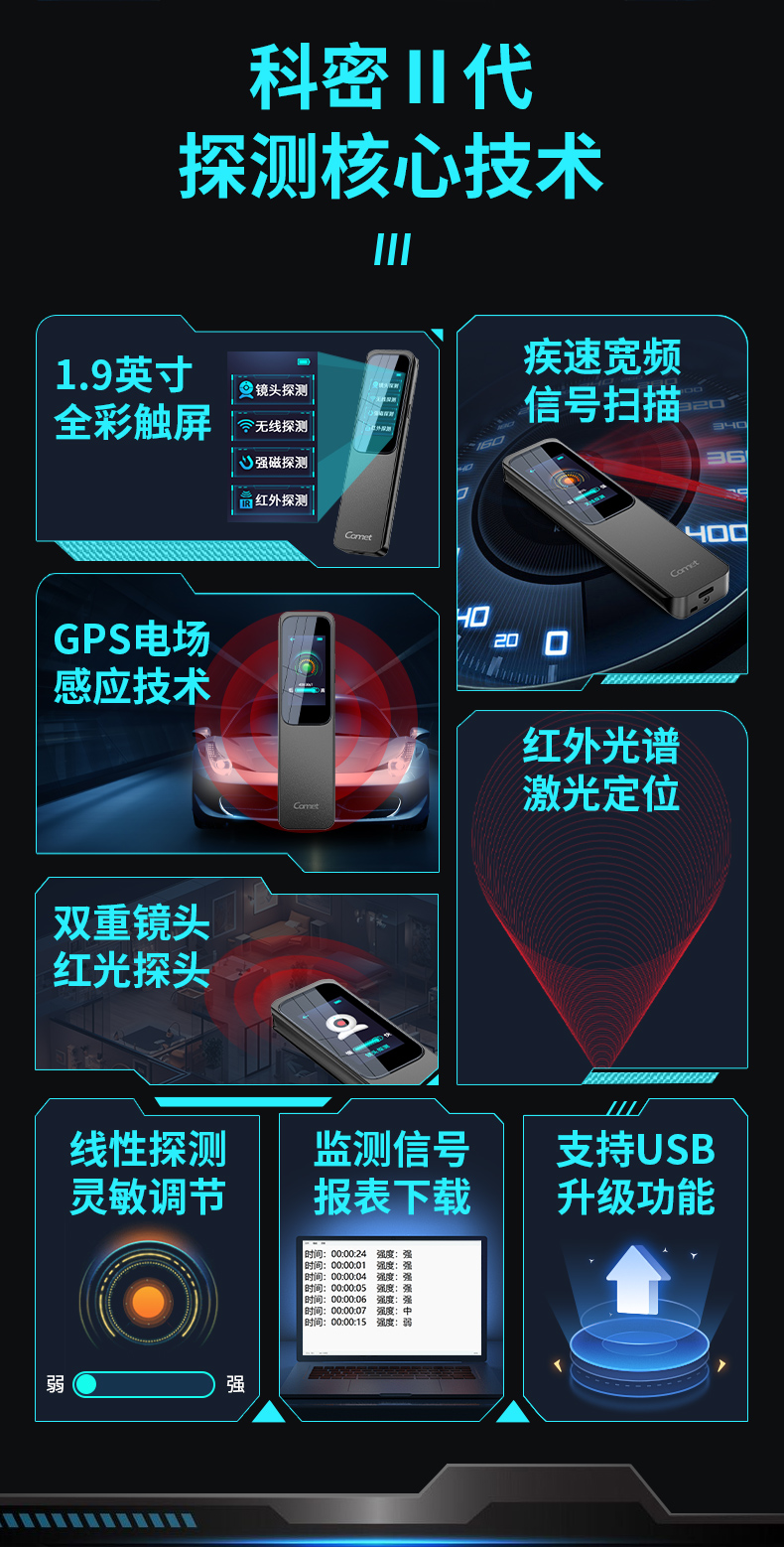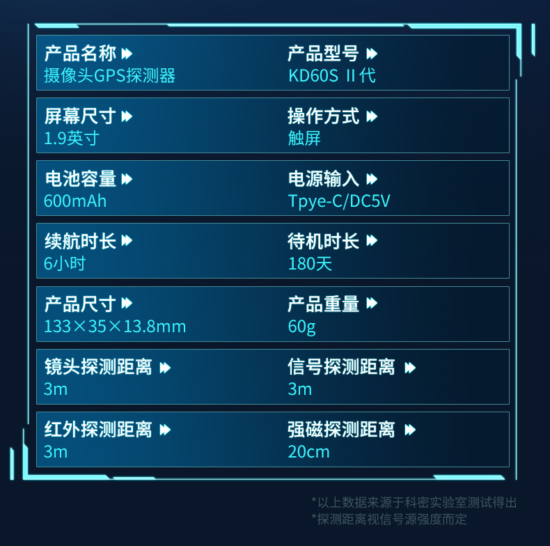 科密摄像头探测器酒店防偷拍信号窃听GPS定位器跟踪探测仪KD60SⅡ代