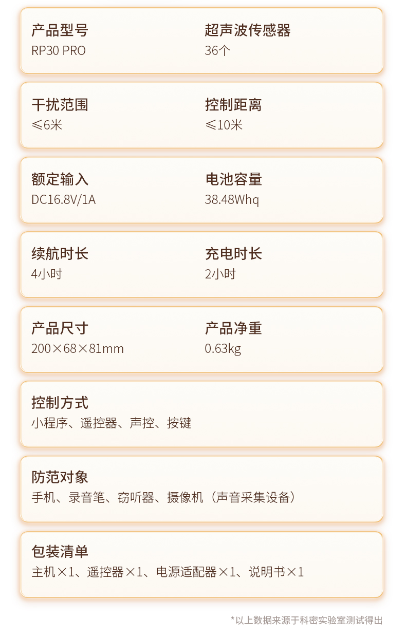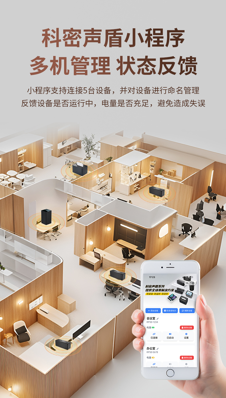 科密防录音干扰屏蔽器防手机视频录音笔反窃听监听办公室机密会议谈话 RP30pro小程序连接36头音响款