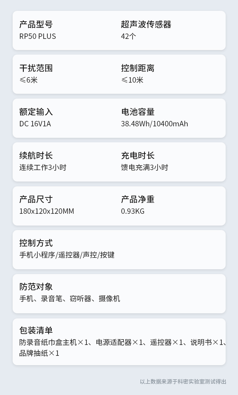 科密防录音干扰器录音笔手机防窃听监偷听设备视频录像屏蔽仪RP50PLUS