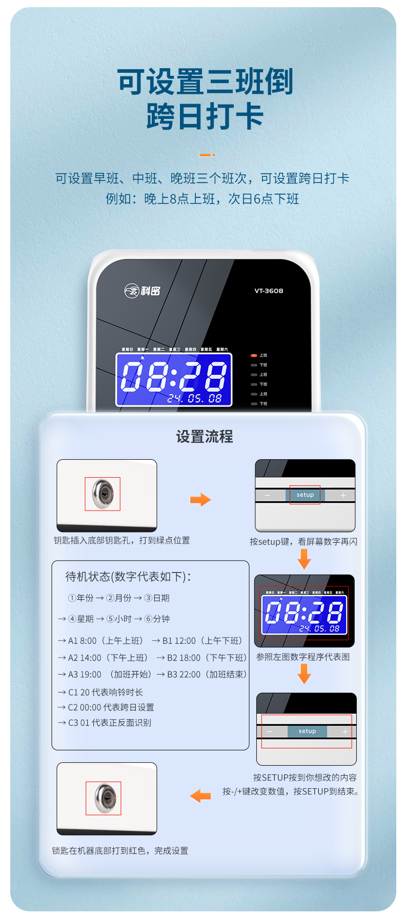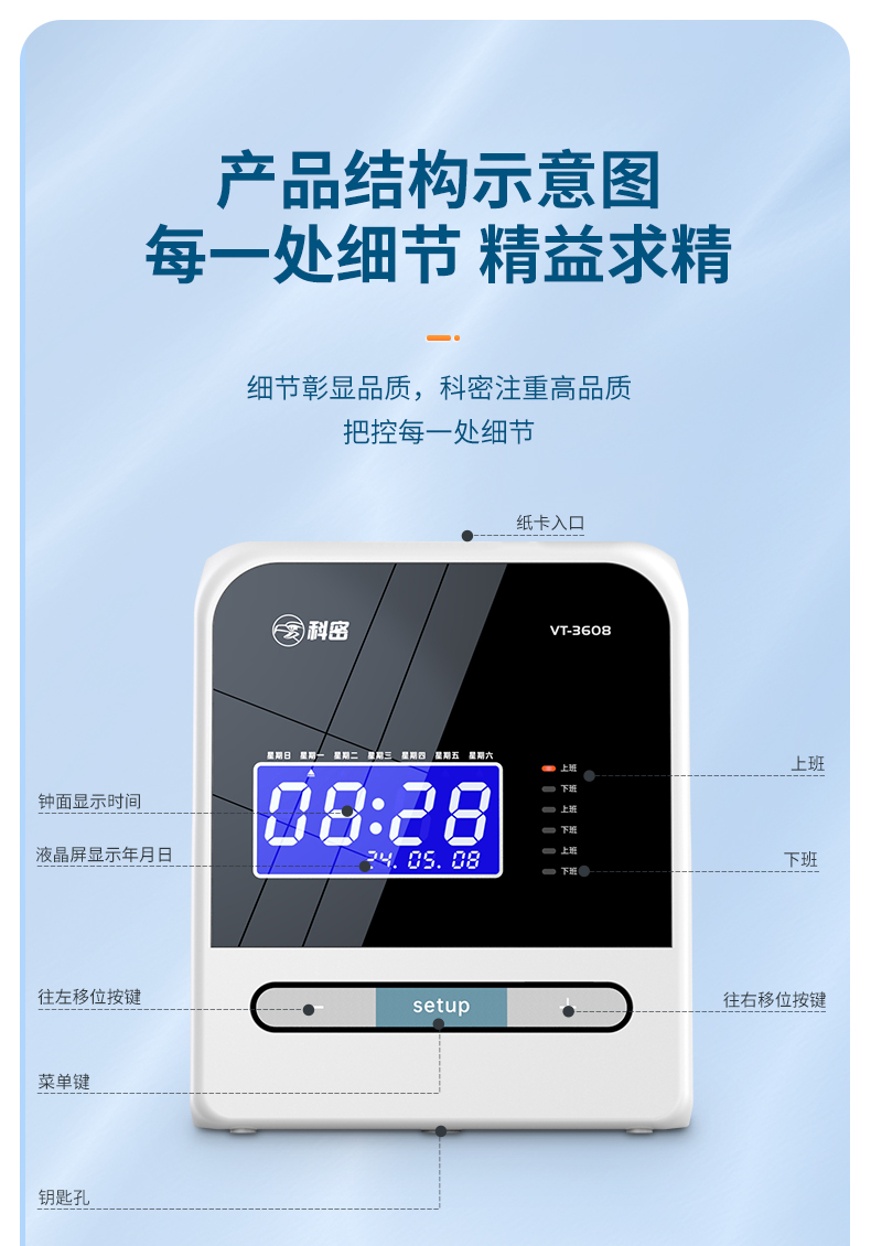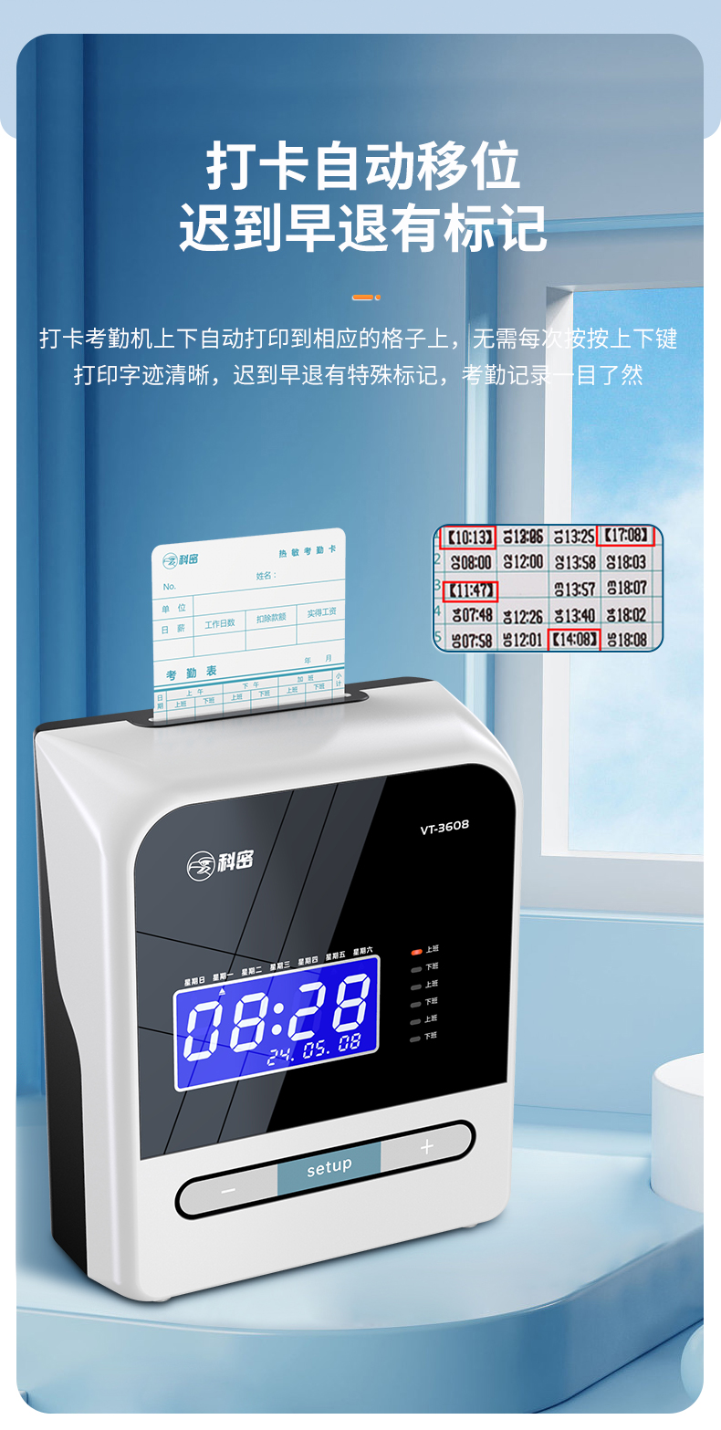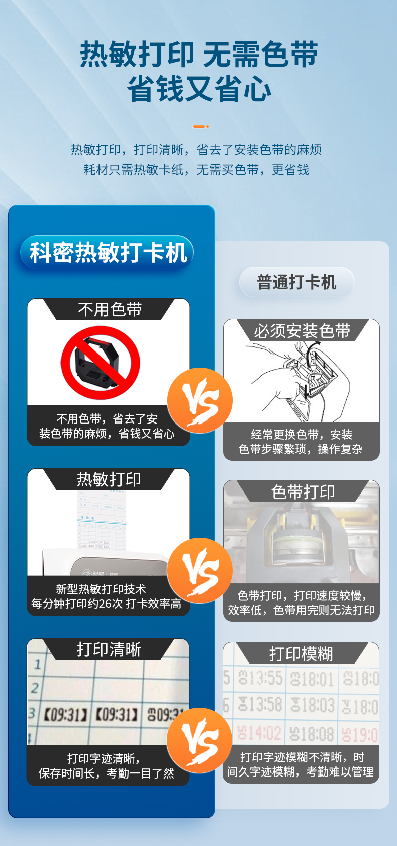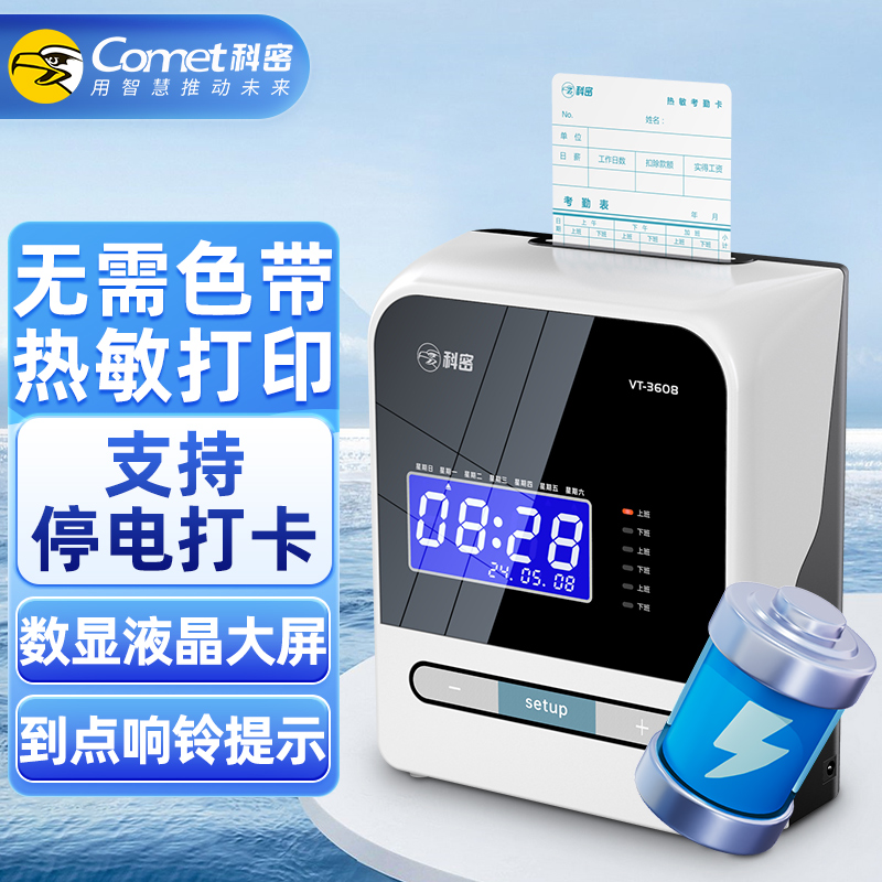 科密(comet) 打卡机考勤机卡钟 微电脑考勤机 热敏卡纸免色带打卡机自动移位可停电打卡VT-3608D
