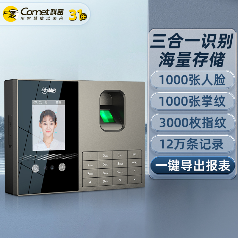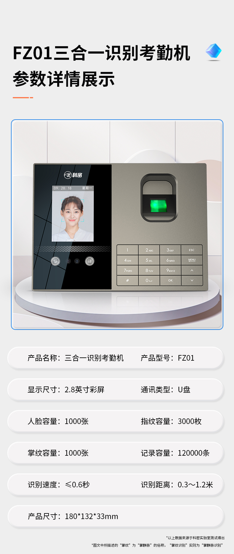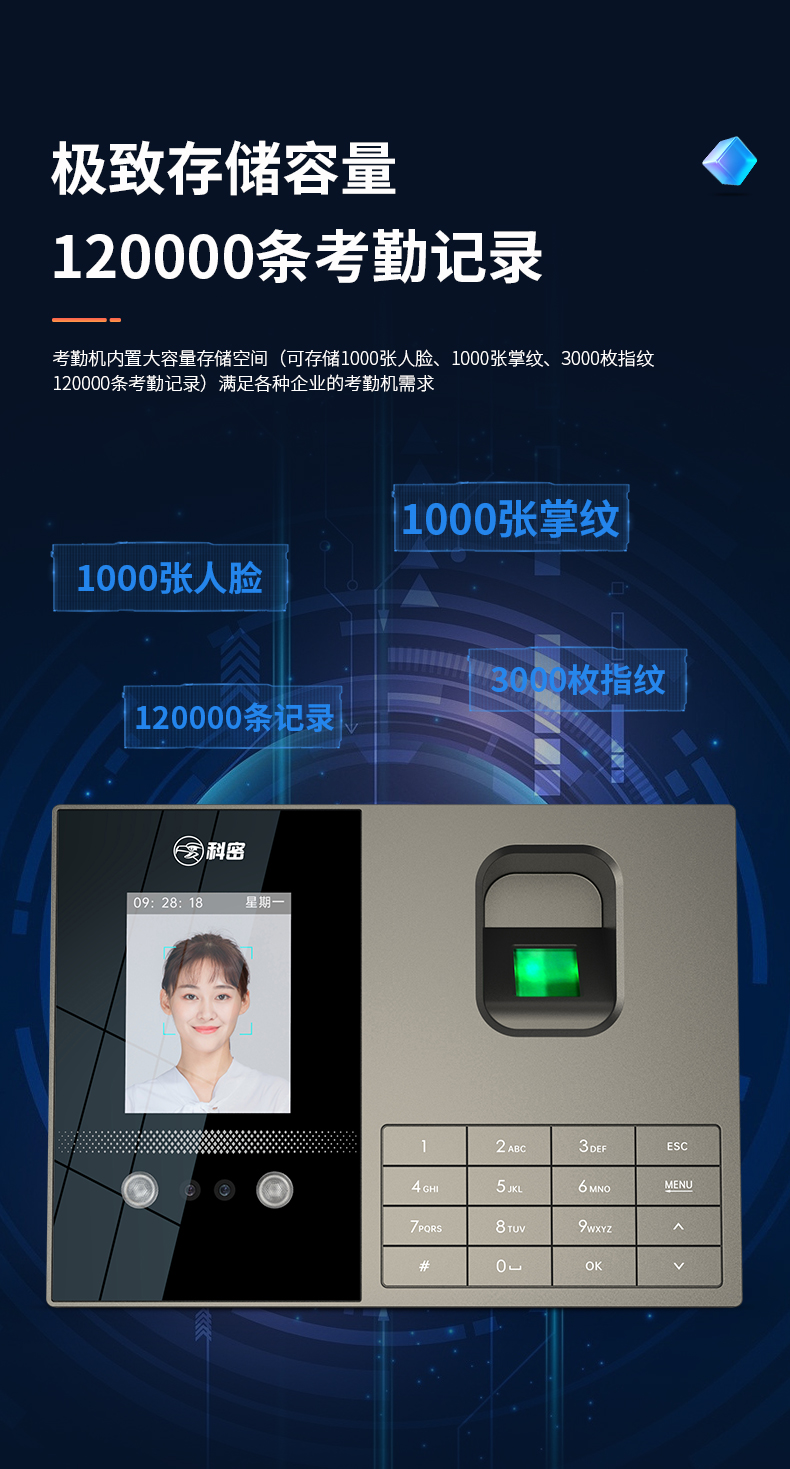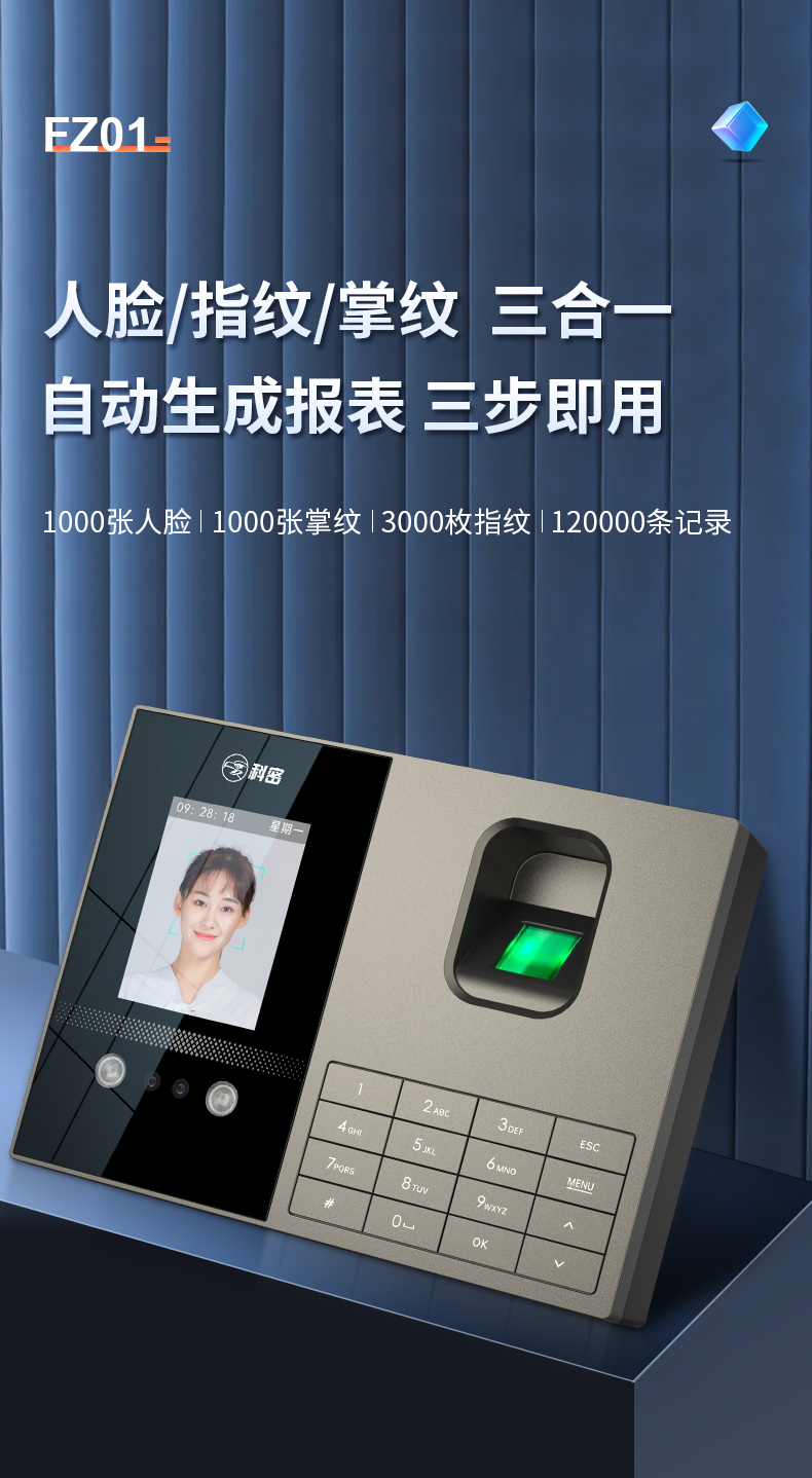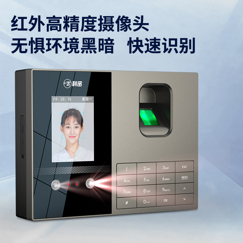 科密考勤机 打卡机人脸+指纹 掌静脉识别 免网络免软件 大容量设置简单 自动生成报表考勤机FZ01