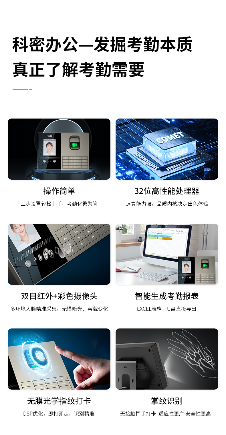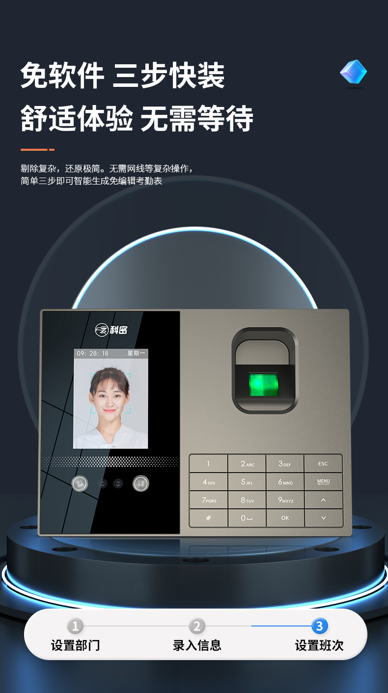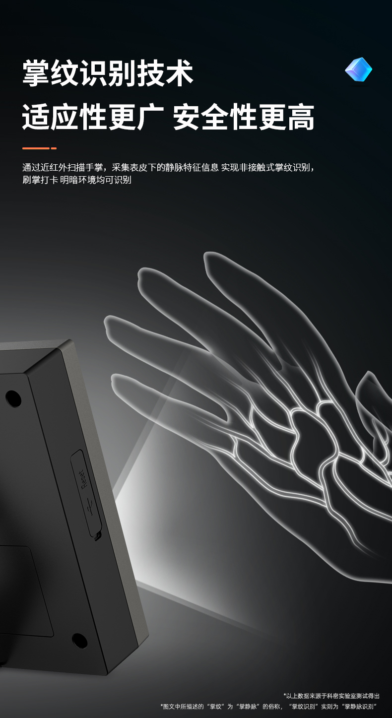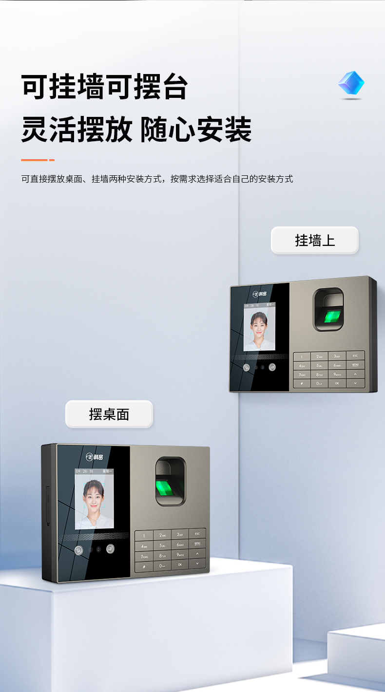 科密考勤机 打卡机人脸+指纹 掌静脉识别 免网络免软件 大容量设置简单 自动生成报表考勤机FZ01