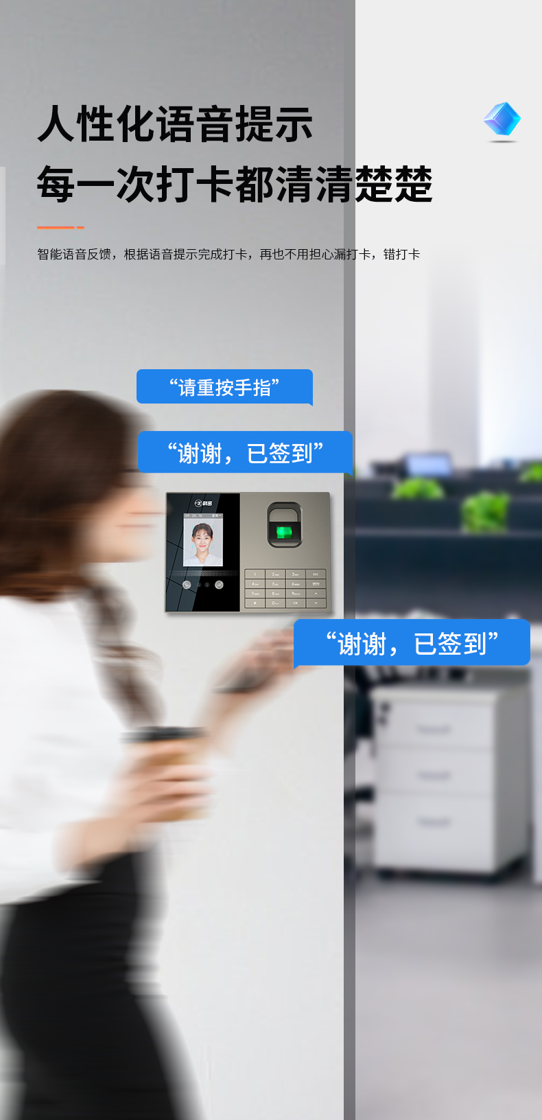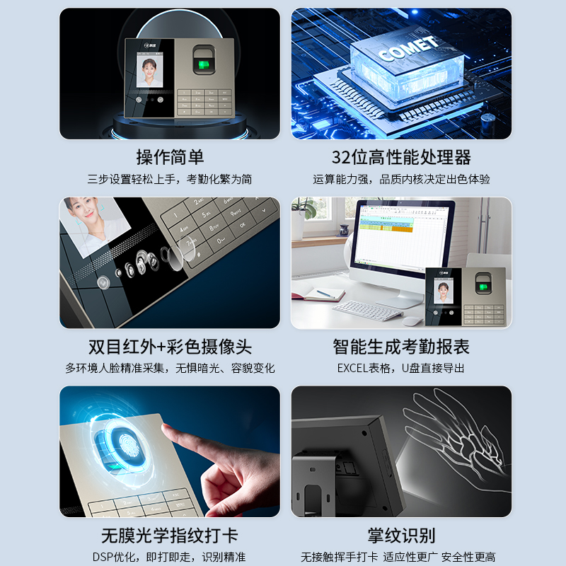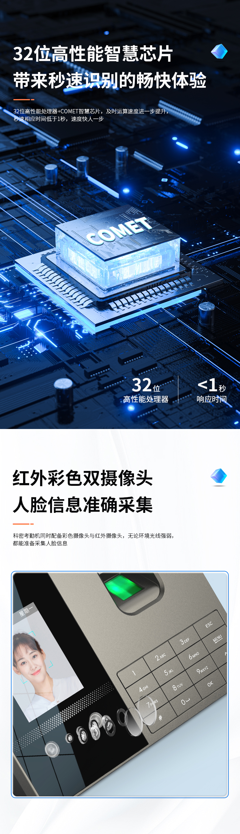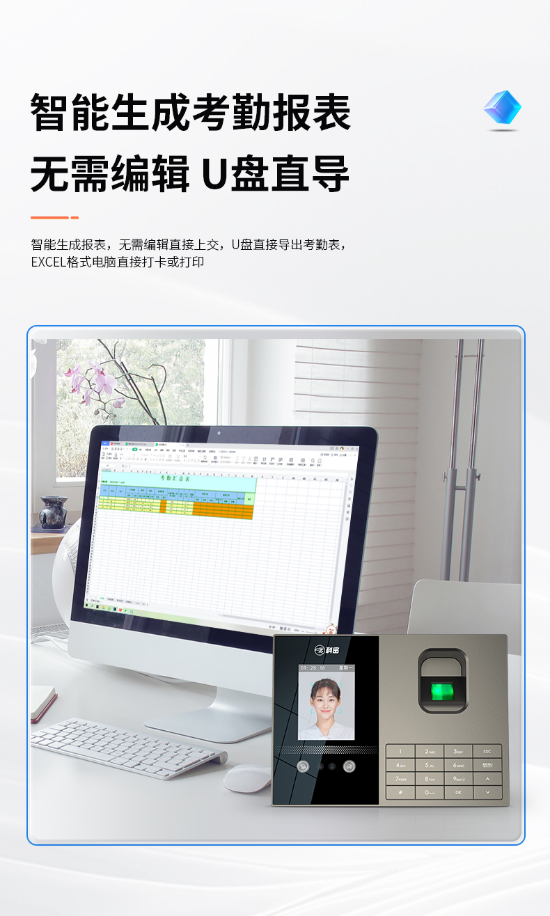科密考勤机 打卡机人脸+指纹 掌静脉识别 免网络免软件 大容量设置简单 自动生成报表考勤机FZ01