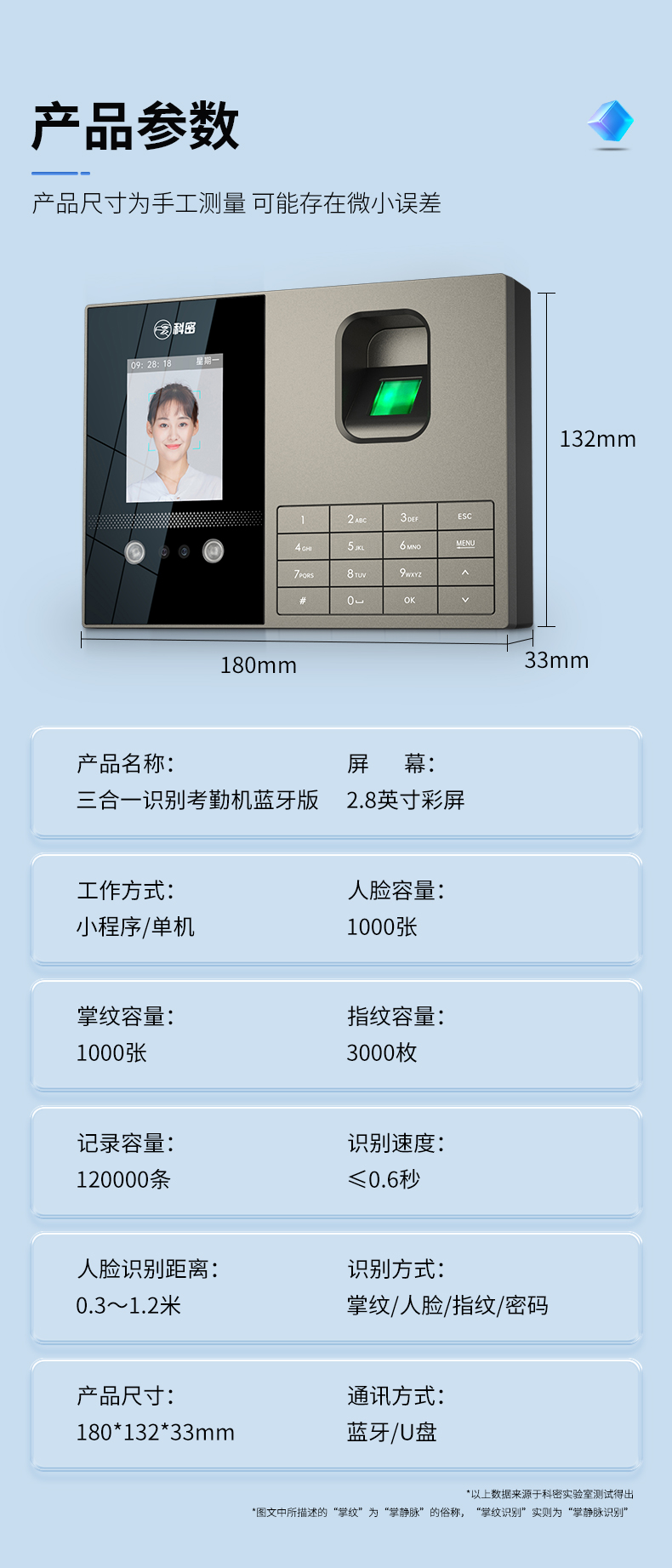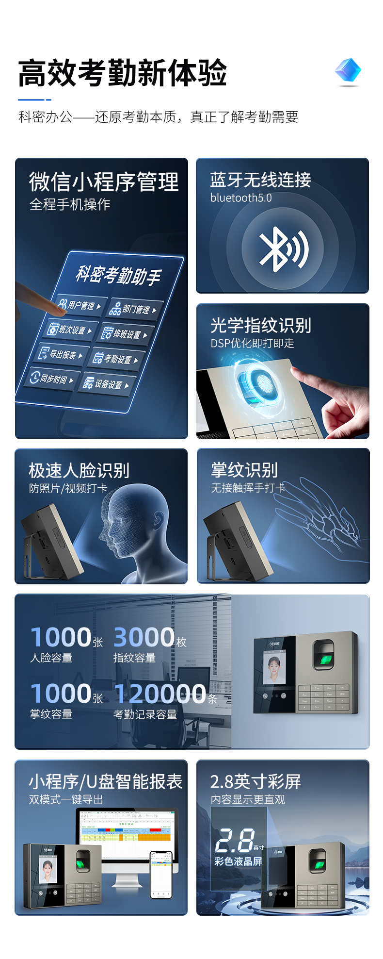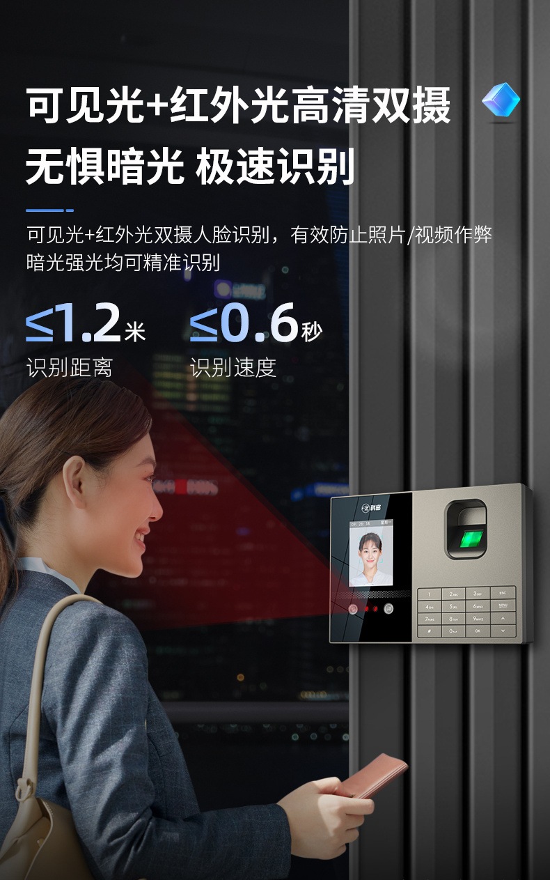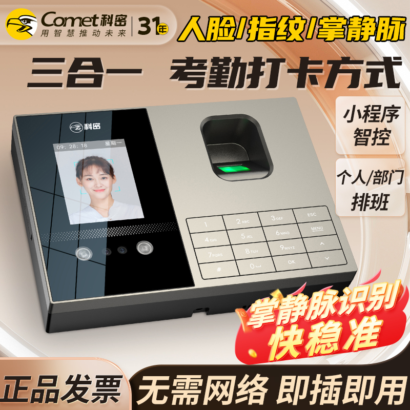 科密(comet)考勤机 打卡机人脸+指纹掌静脉识别考勤机 蓝牙连接 小程序管理 自动生成报表FZ03