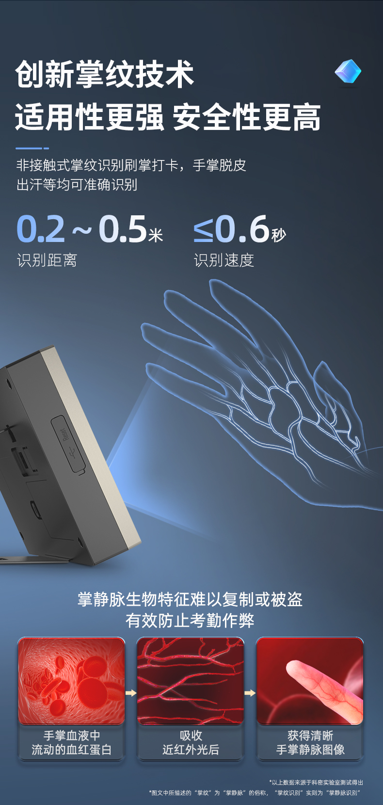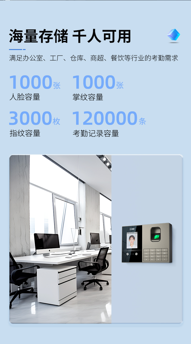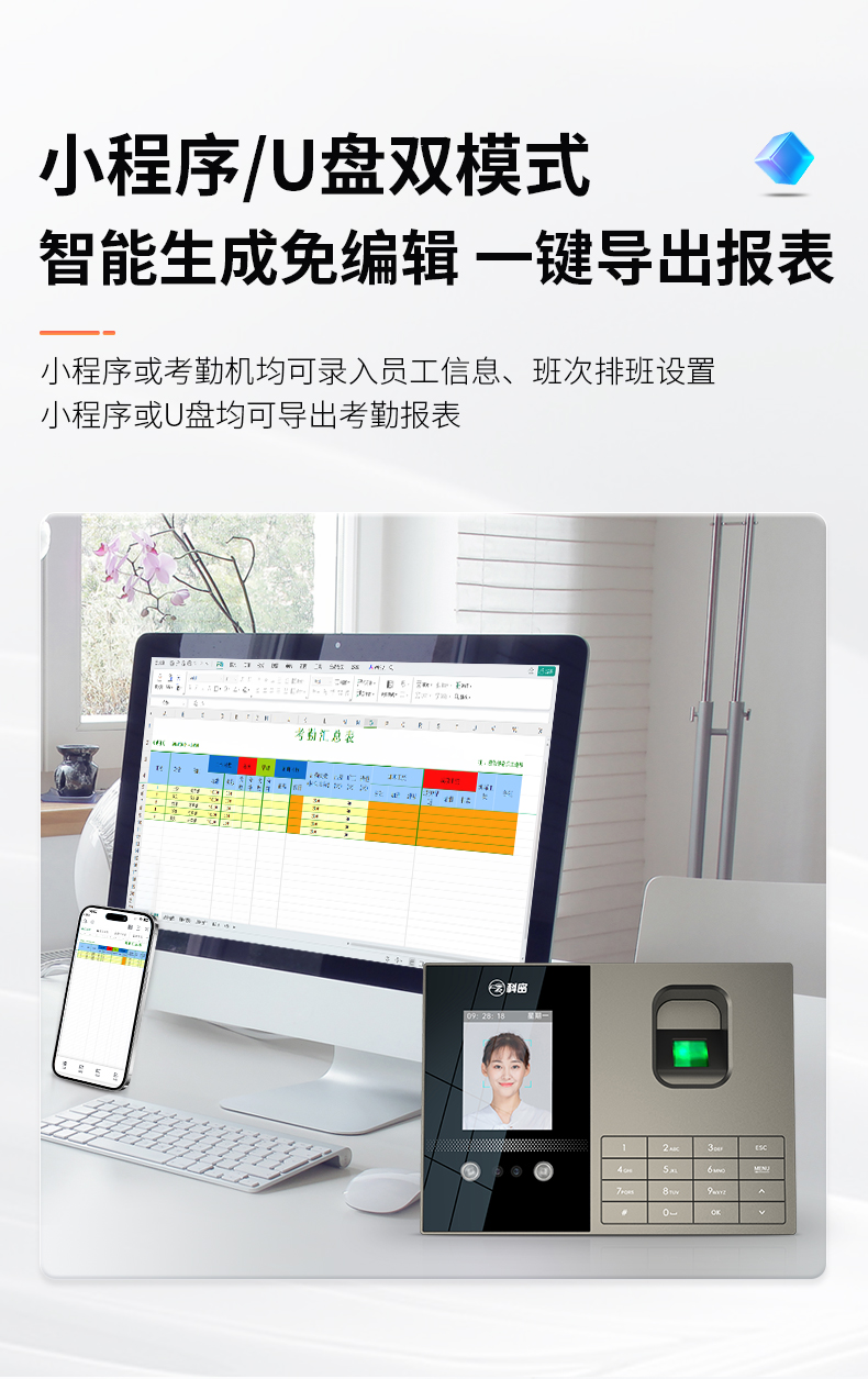 科密(comet)考勤机 打卡机人脸+指纹掌静脉识别考勤机 蓝牙连接 小程序管理 自动生成报表FZ03