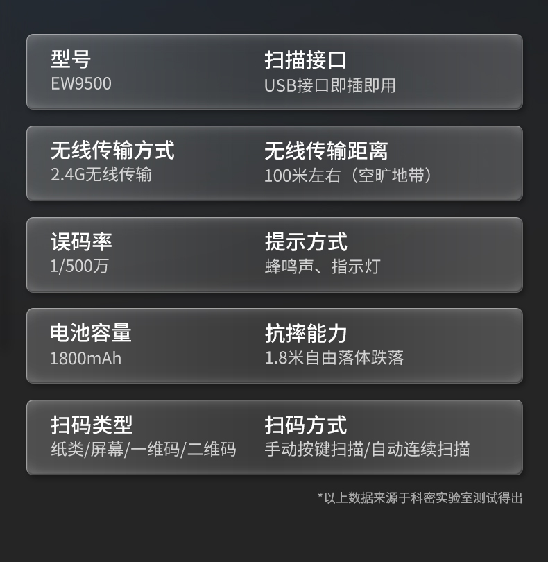 科密EW-9500无线扫码枪条码扫描枪一二维码扫描枪支付扫码收款零售物流盘点数据采集器